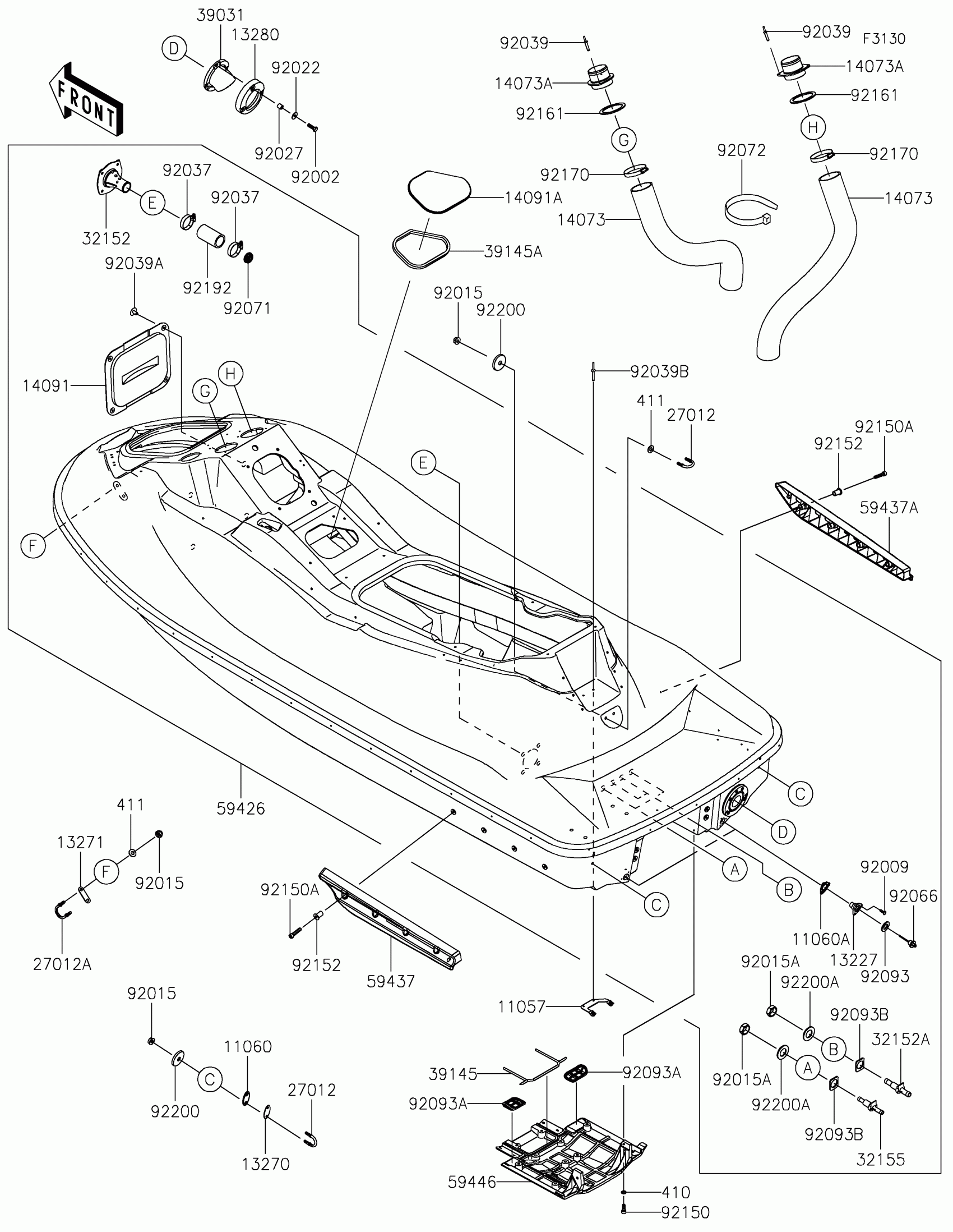 Kawasaki STX 160X Hull Diagram