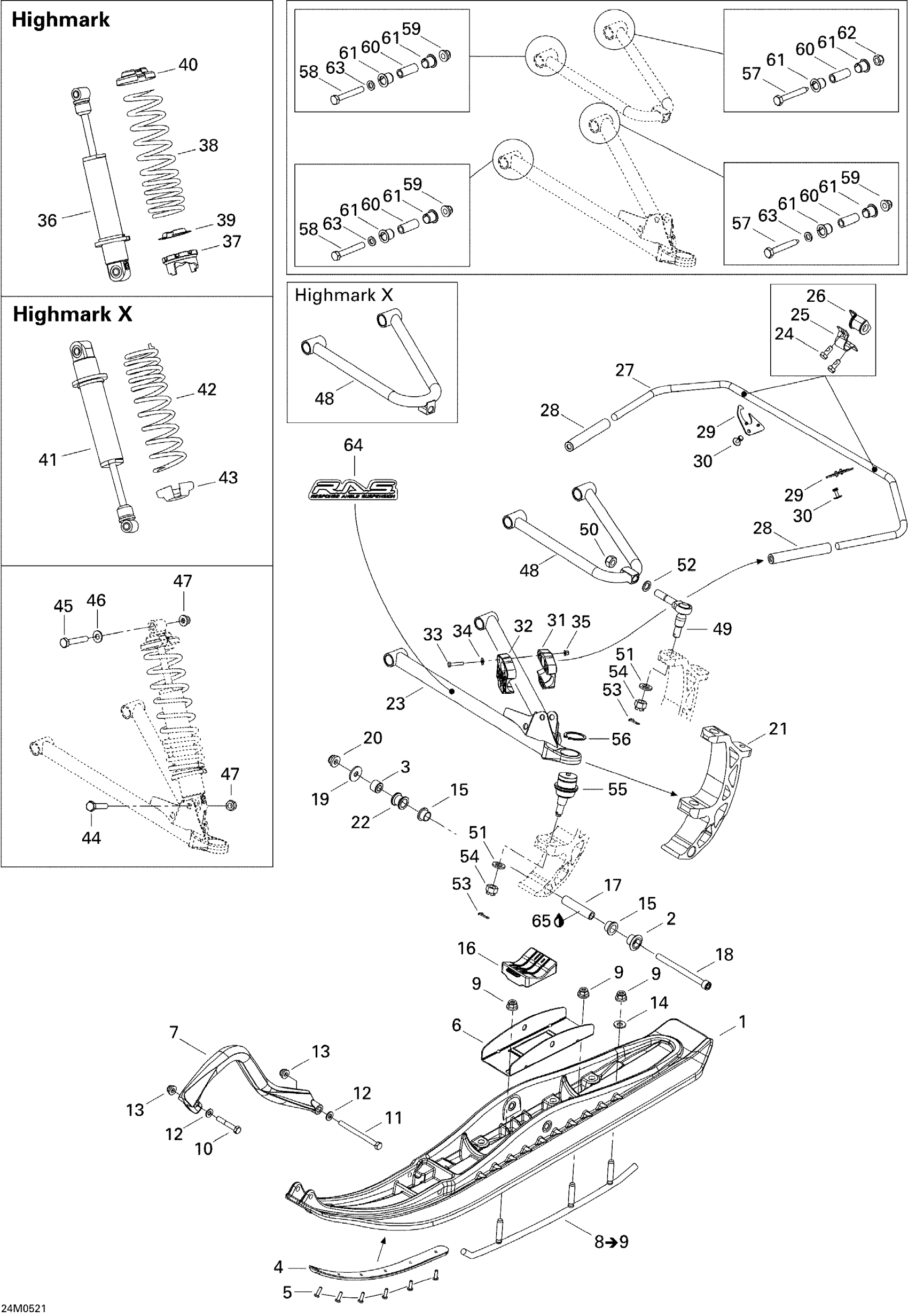 Ski-Doo Summit 1000 SDI, Highmark & Highmark X, 2005 Front Suspension And Ski Diagram