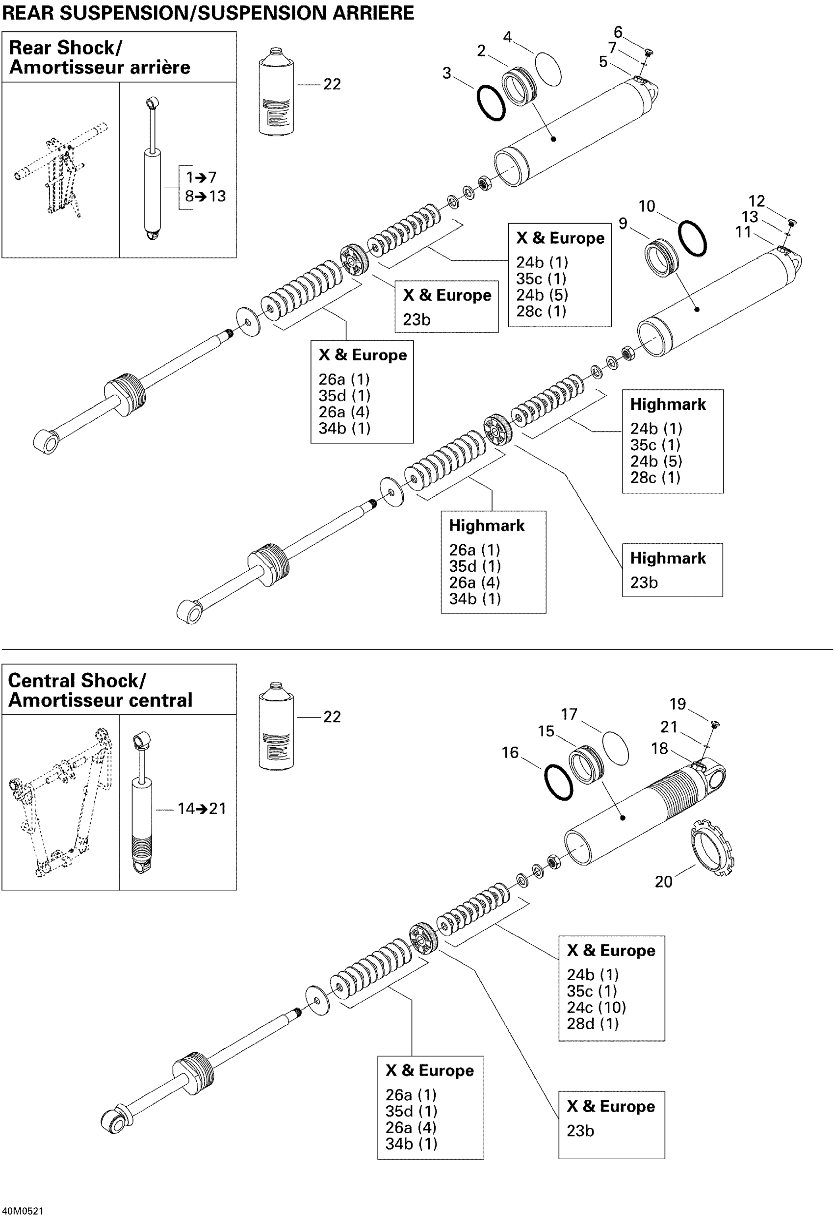 Ski-Doo Summit 1000 SDI, Highmark & Highmark X, 2005 Take Apart Shock, Rear Diagram
