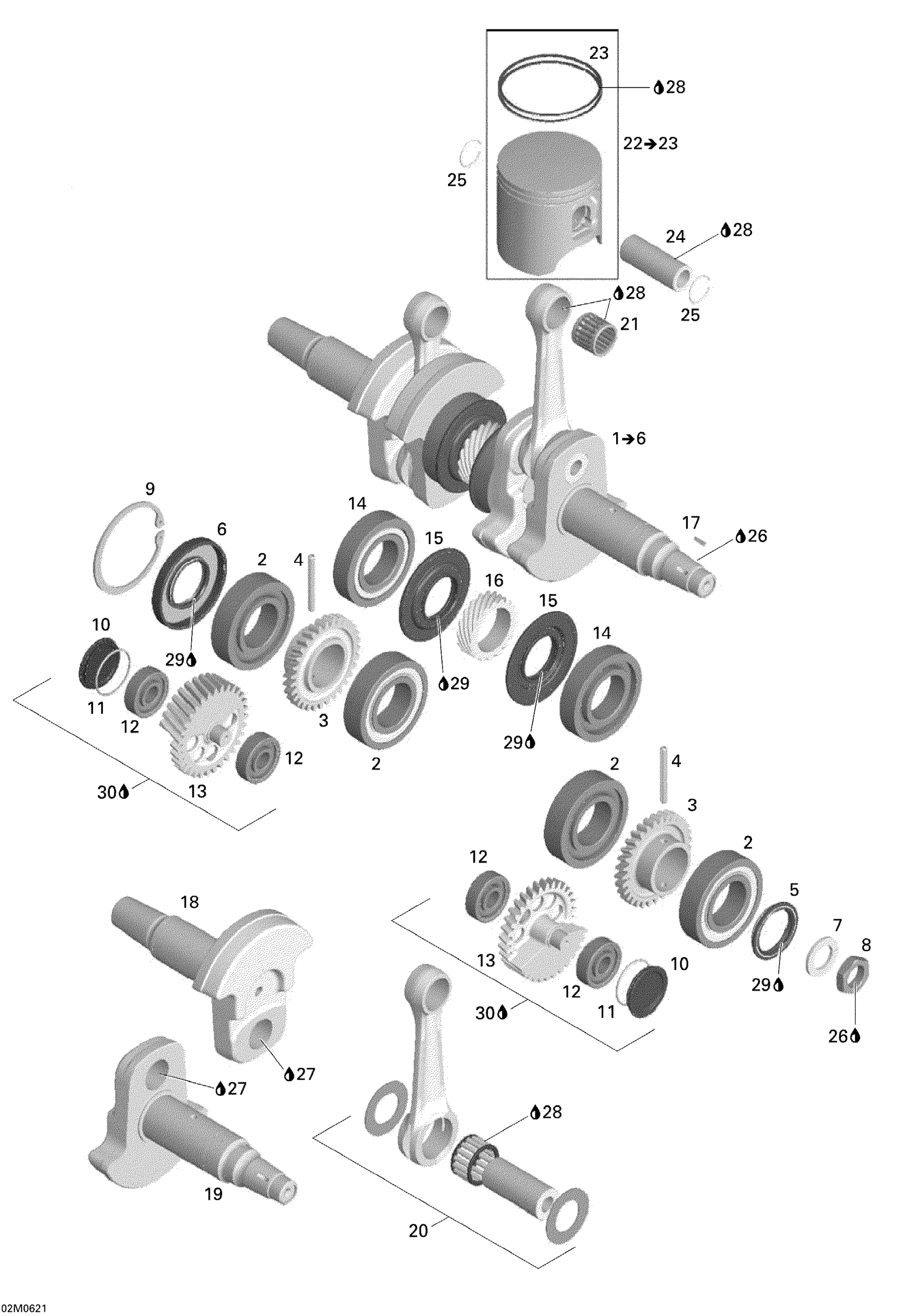 Ski-Doo Summit 1000 SDI, Highmark & Highmark X, 2006 Crankshaft And Pistons Diagram