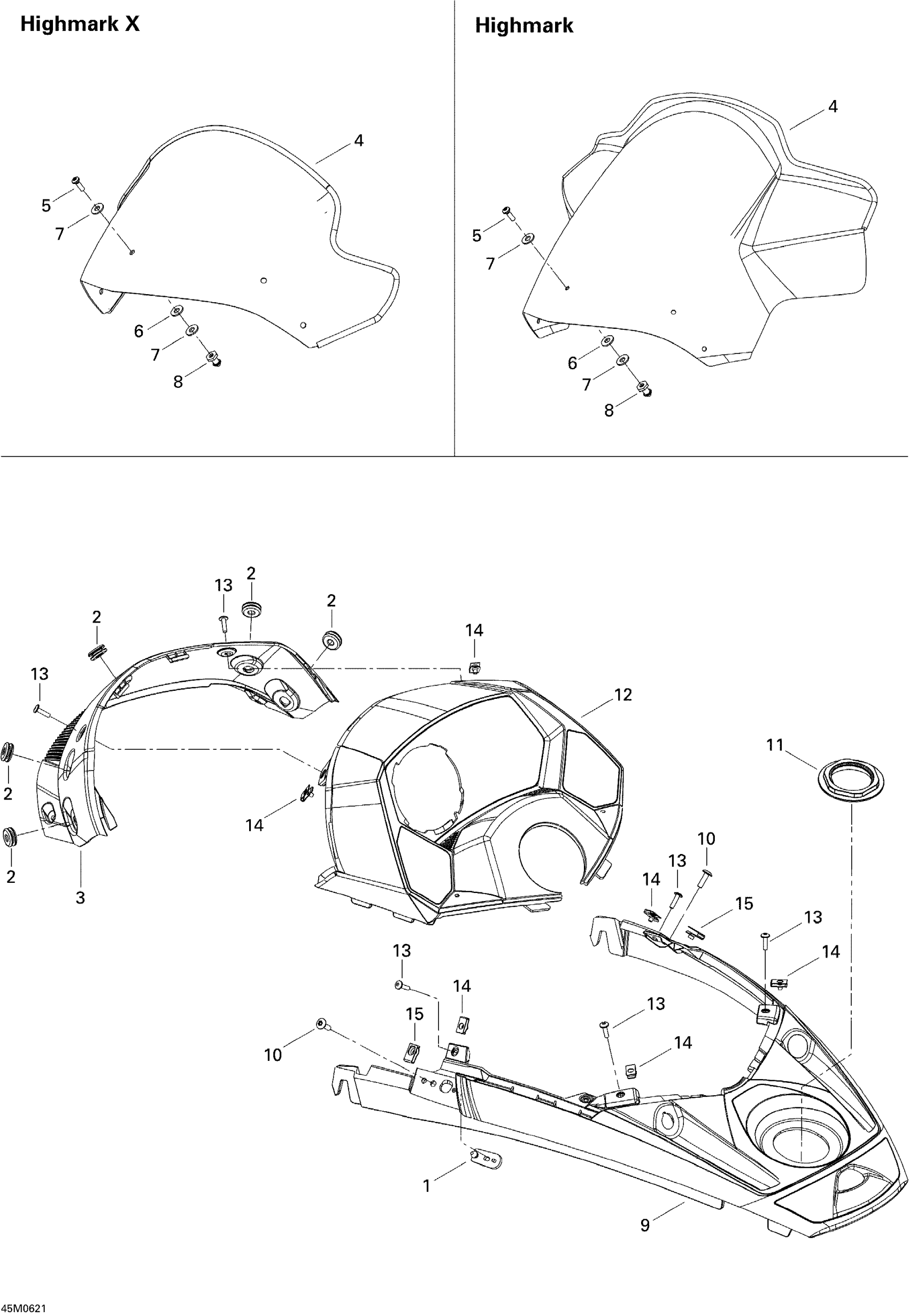 Ski-Doo Summit 1000 SDI, Highmark & Highmark X, 2006 Windshield And Console Diagram