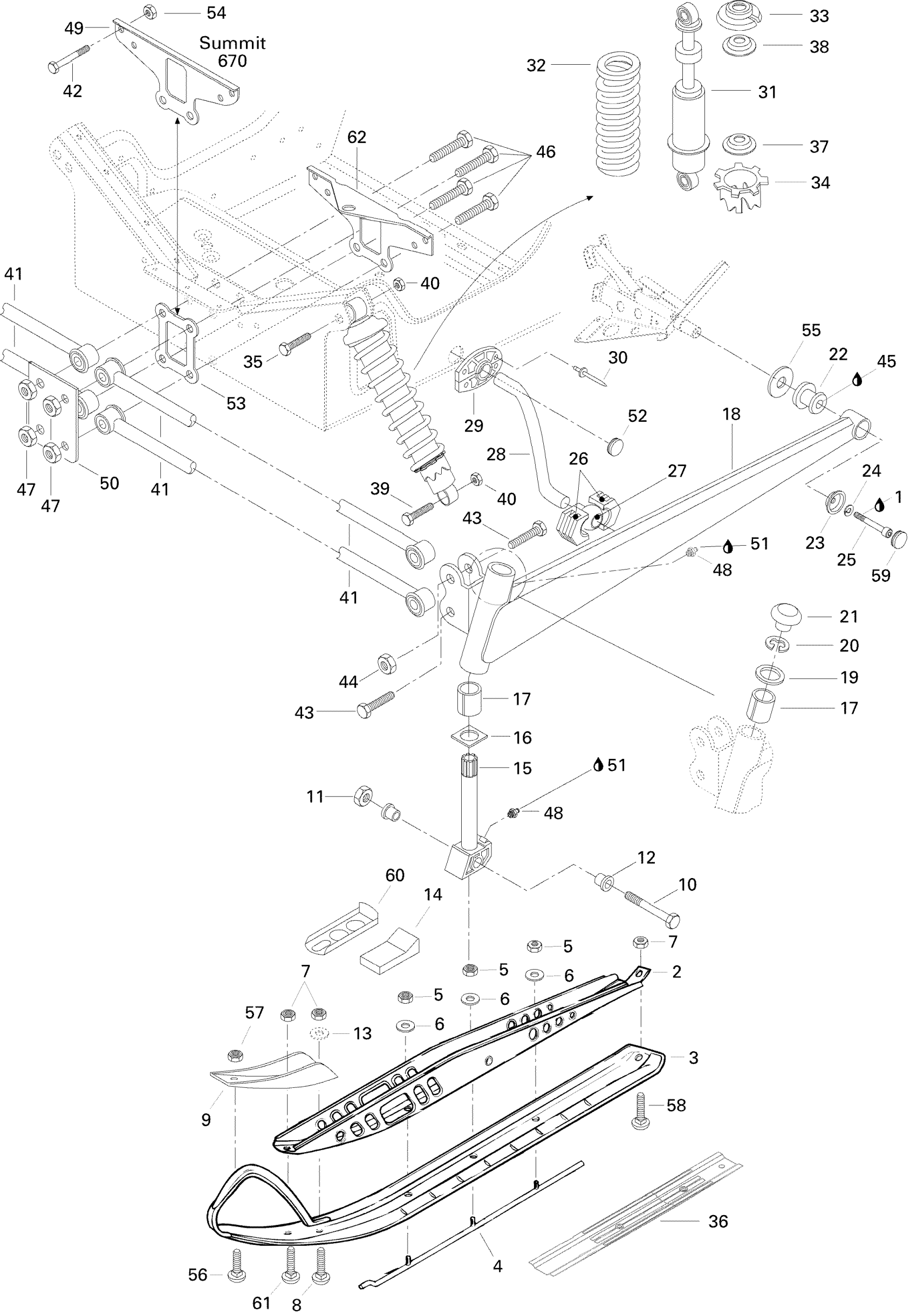 Ski-Doo Summit 500, 1996 Front Suspension And Ski 500 Diagram