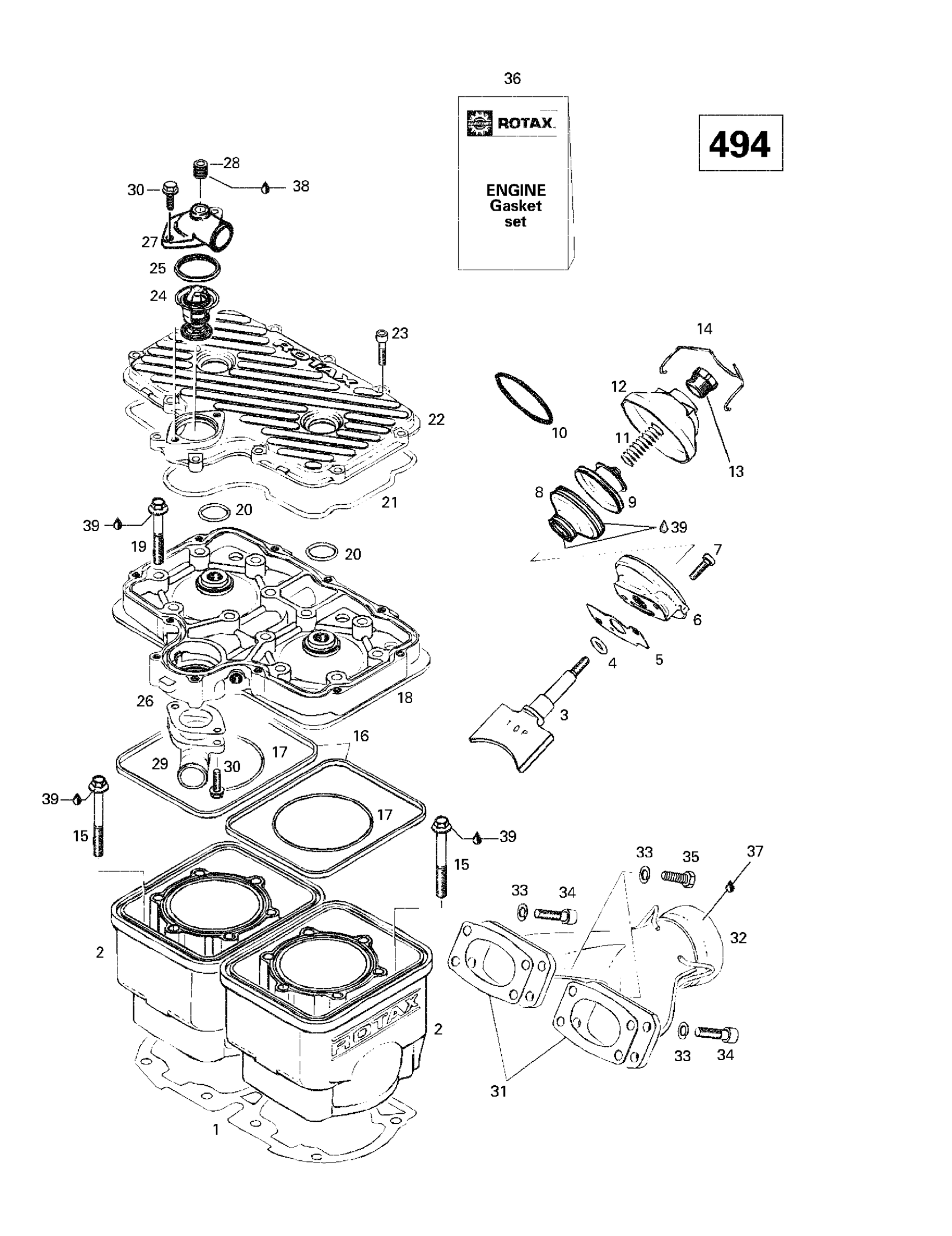 Ski-Doo Summit 500/583/670, 1998 Cylinder, Exhaust Manifold (494) Diagram