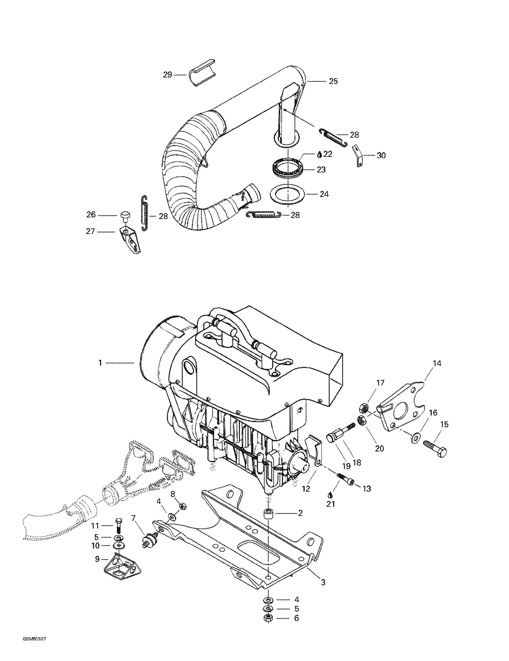 Ski-Doo Summit 500 F, 2001 Engine Support And Muffler Diagram