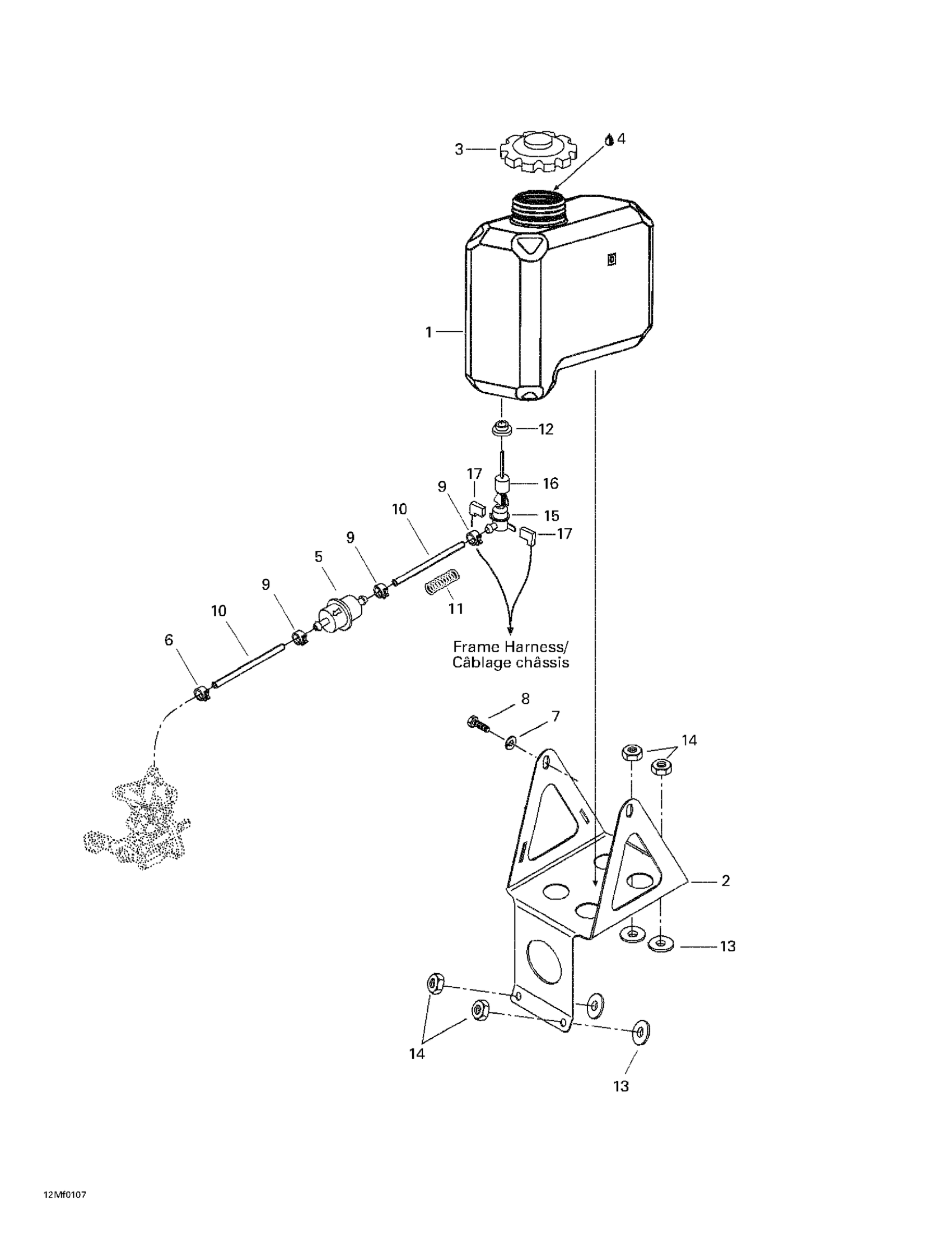 Ski-Doo Summit 500 F, 2001 Oil Tank And Support Diagram