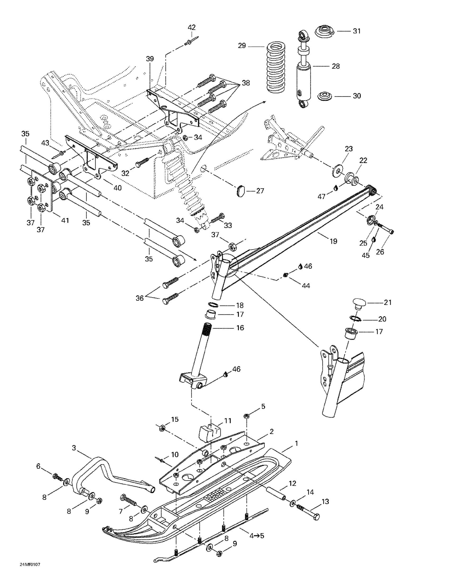 Ski-Doo Summit 500 F, 2001 Front Suspension And Ski Diagram