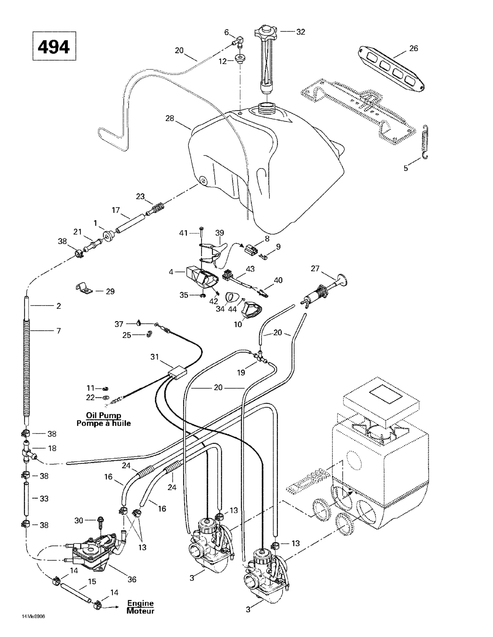 Ski-Doo Summit 500/X 670, 1999 Fuel System (494) Diagram