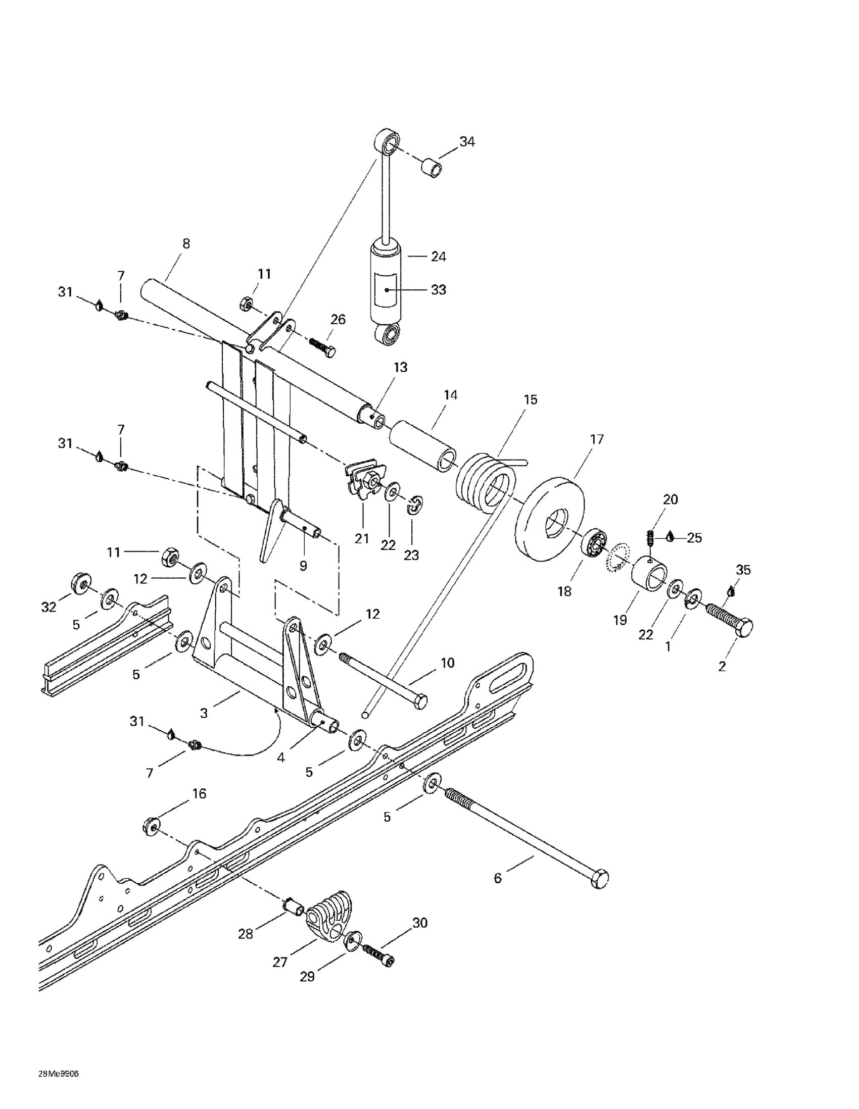 Ski-Doo Summit 500/X 670, 1999 Rear Arm, Rear Suspension Diagram