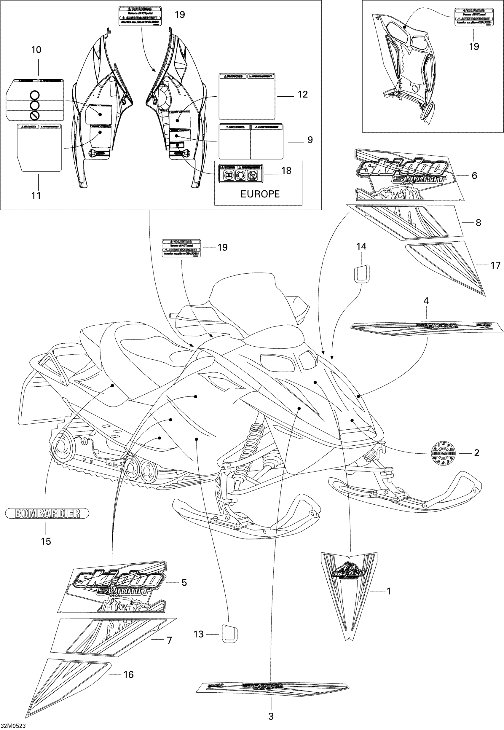 Ski-Doo Summit 550F, 2005 Decals Diagram