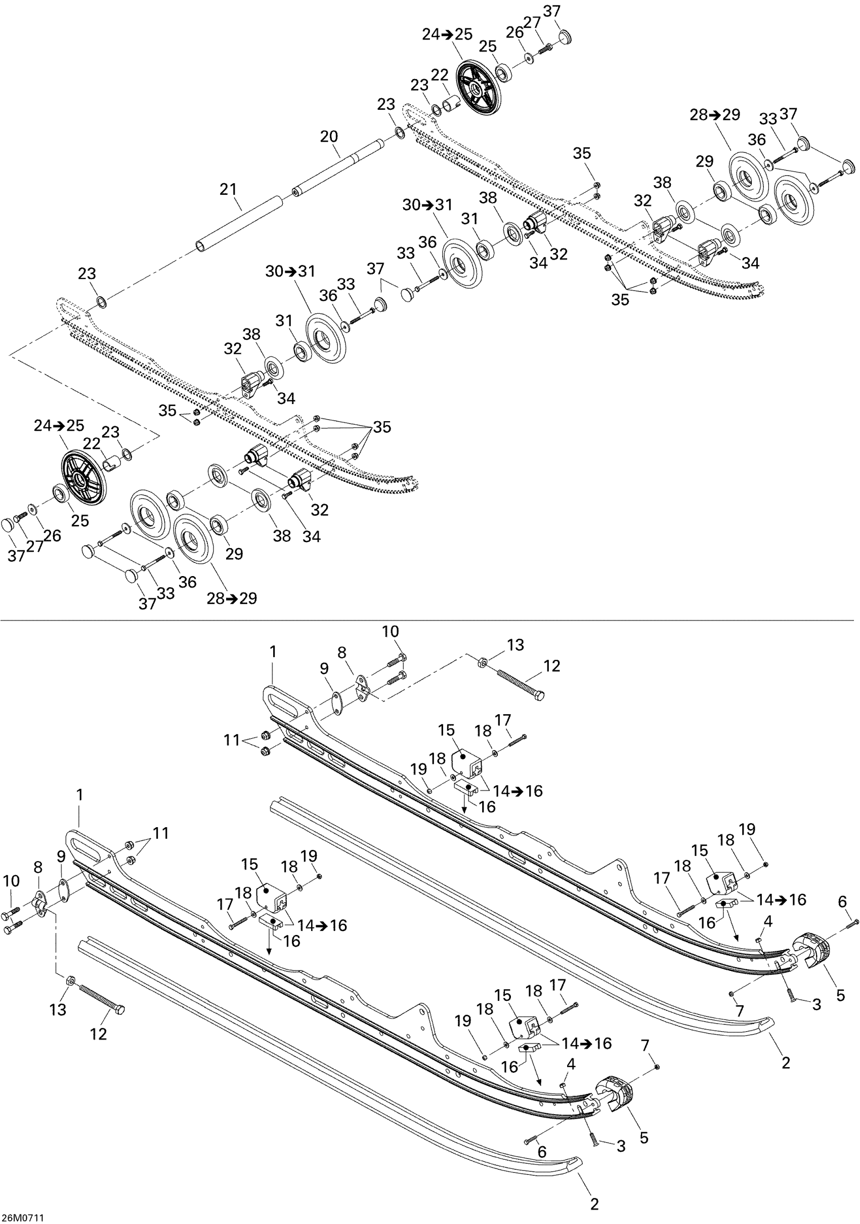 Ski-Doo Summit 550F, 2007 Rear Suspension Diagram