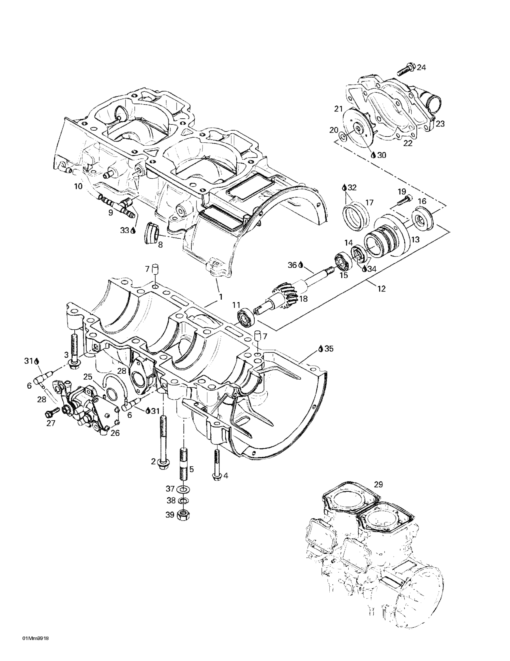Ski-Doo Summit 600, 1999 Crankcase, Water Pump And Oil Pump Diagram