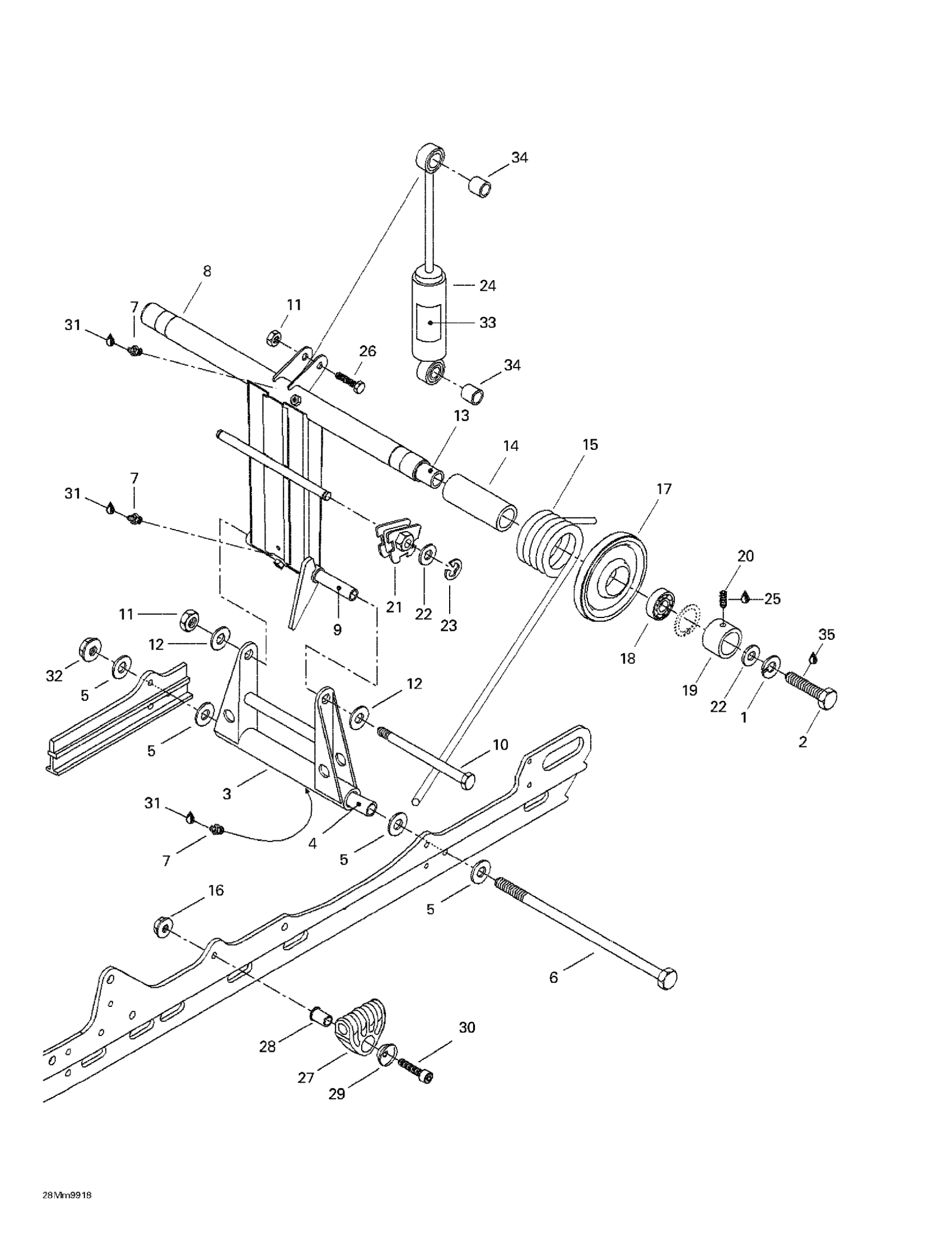 Ski-Doo Summit 600, 1999 Rear Arm, Rear Suspension Diagram