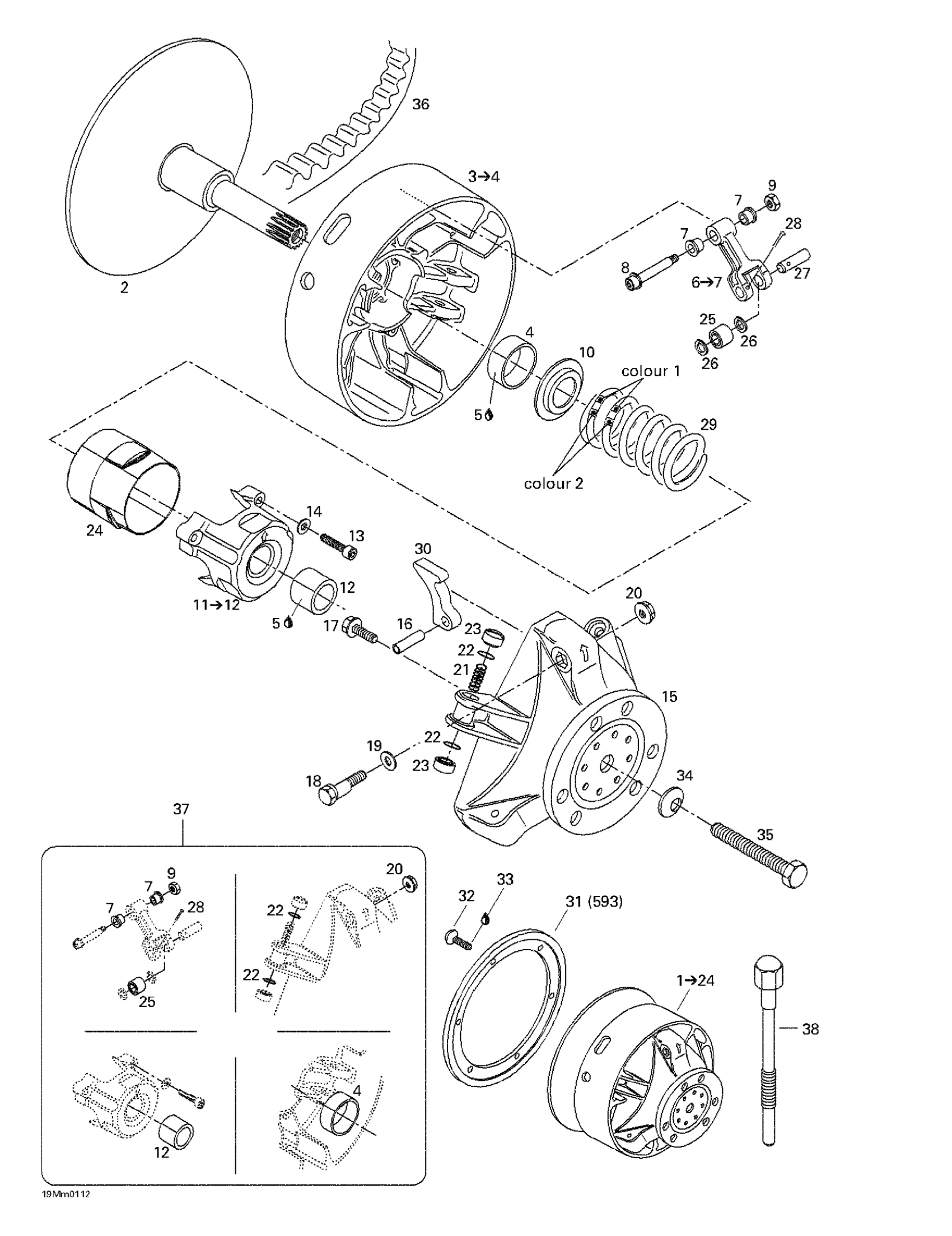 Ski-Doo Summit 600/700/800, 2001 Drive Pulley Diagram