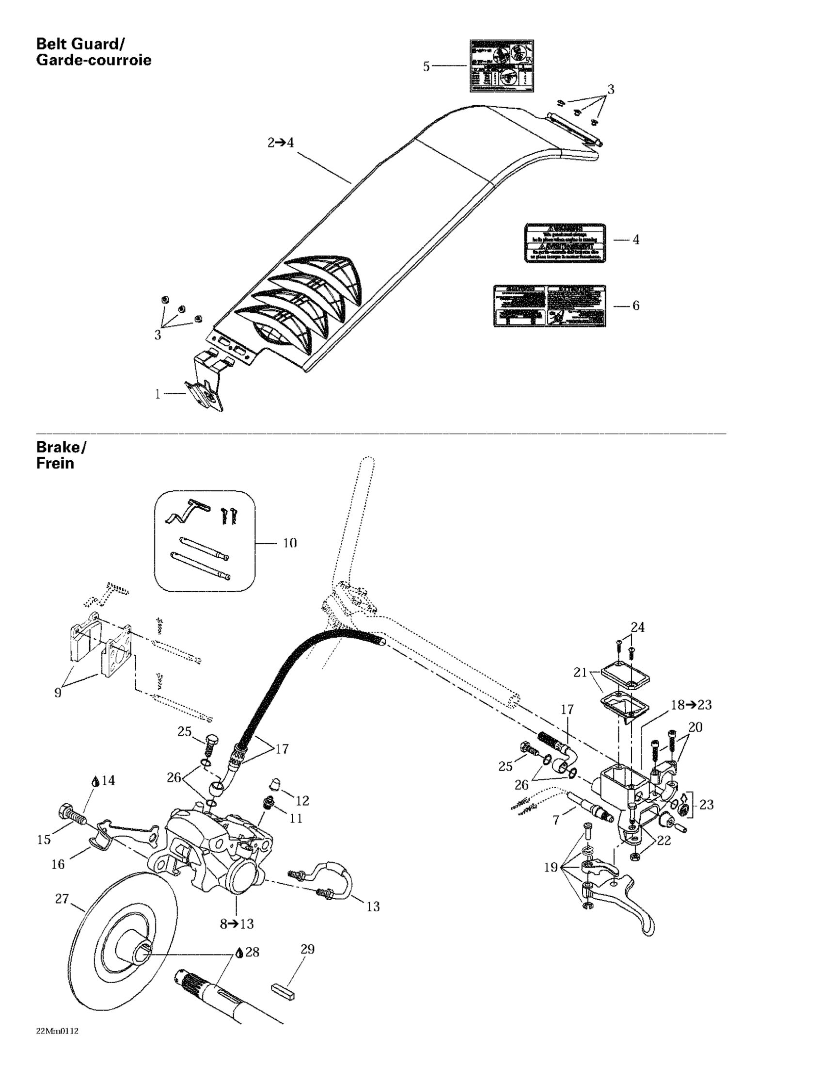 Ski-Doo Summit 600/700/800, 2002 Hydraulic Brake And Belt Guard Diagram