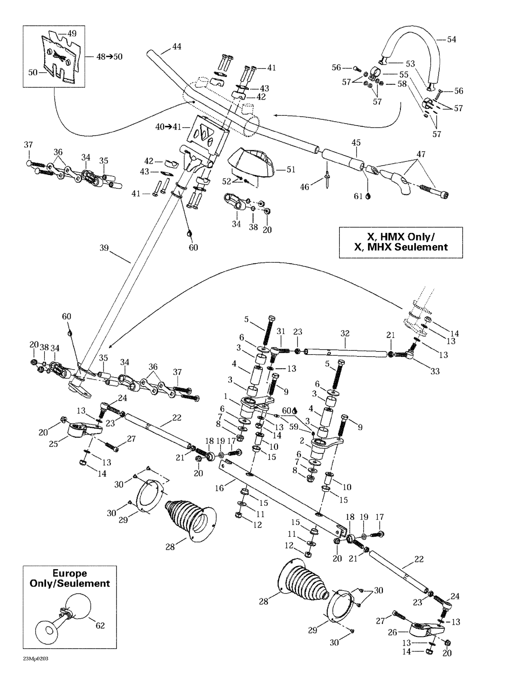 Ski-Doo Summit 600/700/800, 2002 Steering System (X, HMX) Diagram