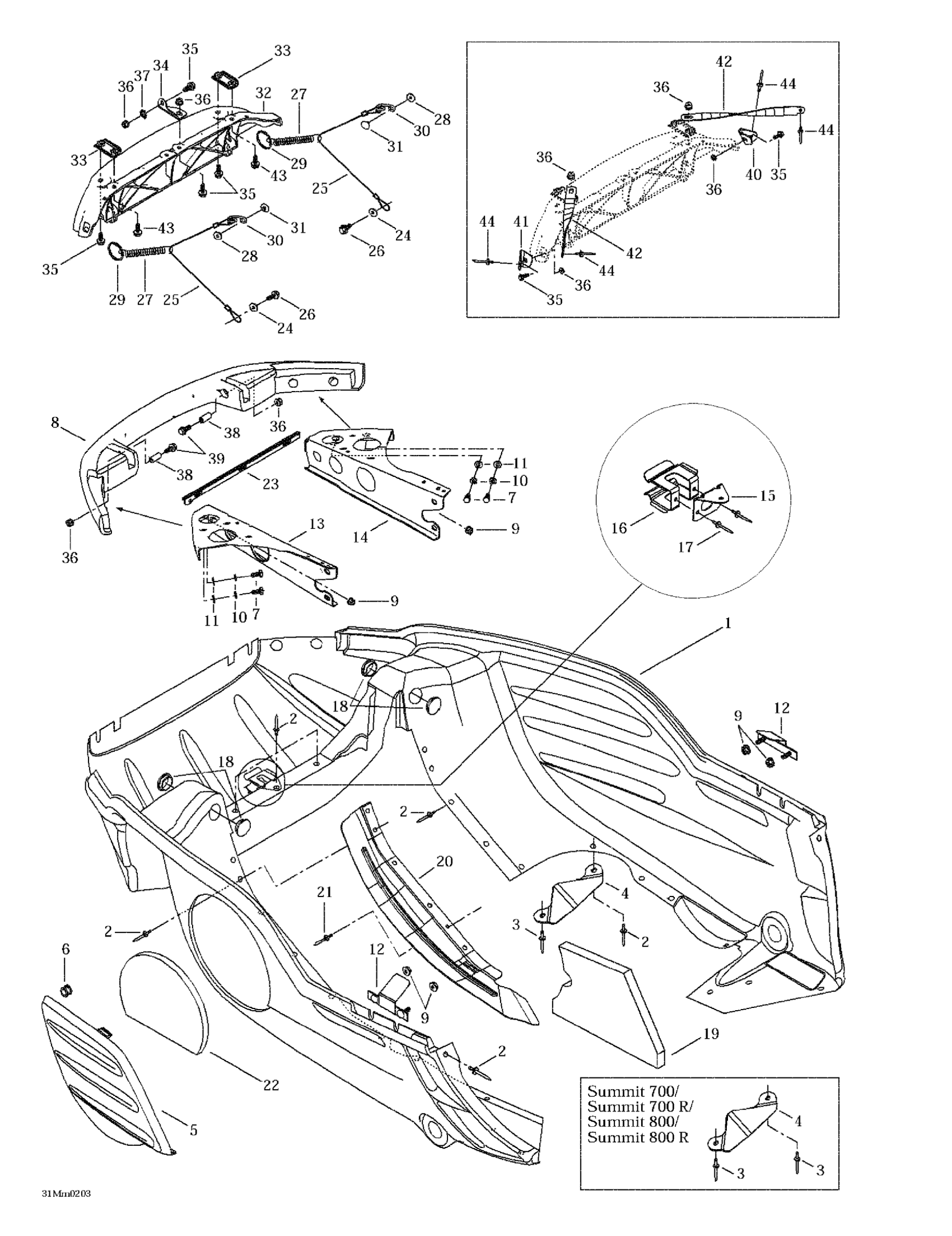 Ski-Doo Summit 600/700/800, 2002 Bottom Pan Diagram