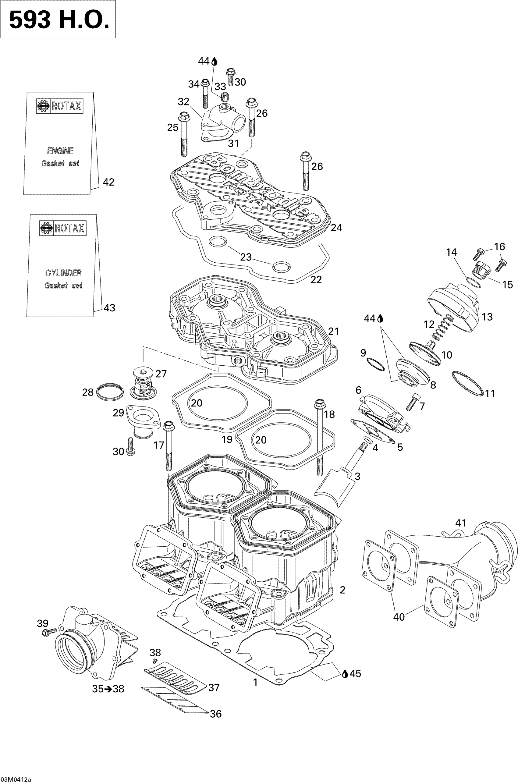 Cylinder, Exhaust Manifold, Reed Valve (593 HO)
