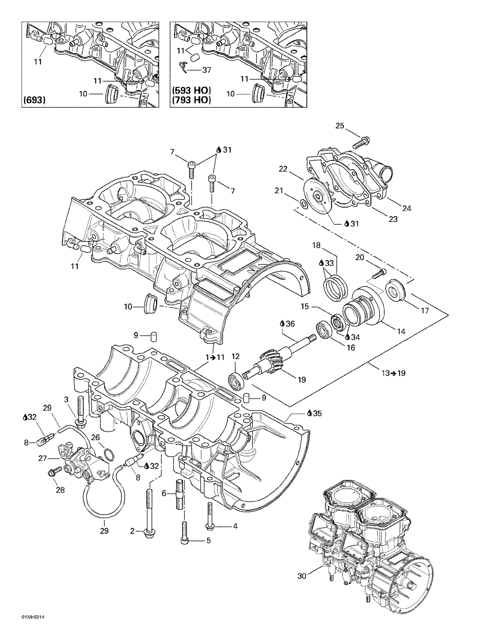 Crankcase ass'y | Includes 1 - 11. Summit 800 HO.
