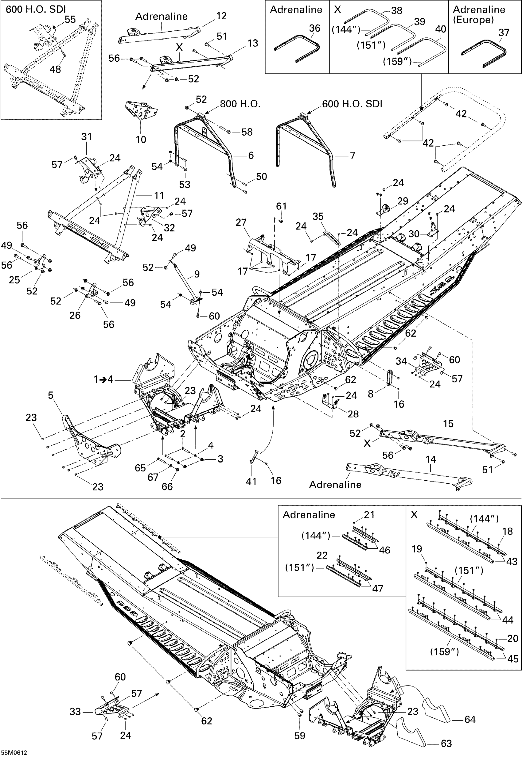 Ski-Doo Summit 600 HO SDI, Adrenaline, 2006 Frame and Components 600HO Diagram