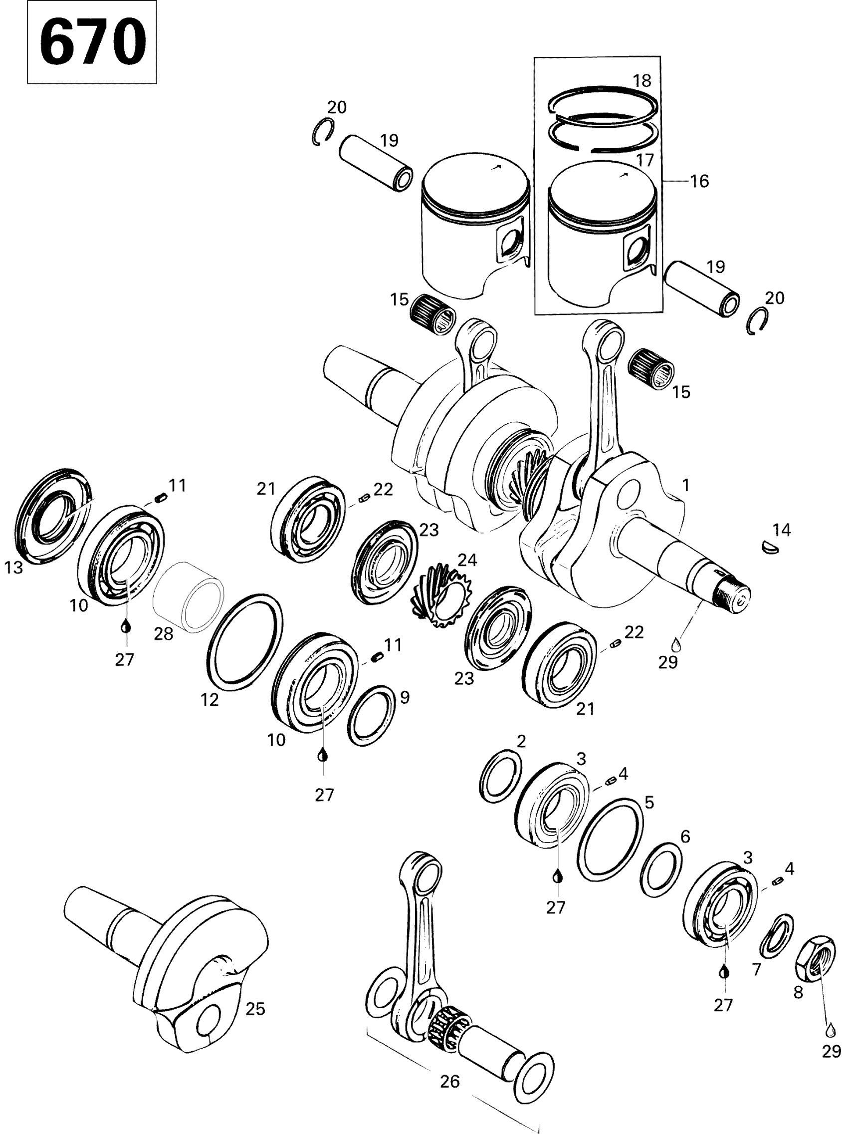 Ski-Doo Summit 670, 1996 Crankshaft And Pistons 670 Diagram