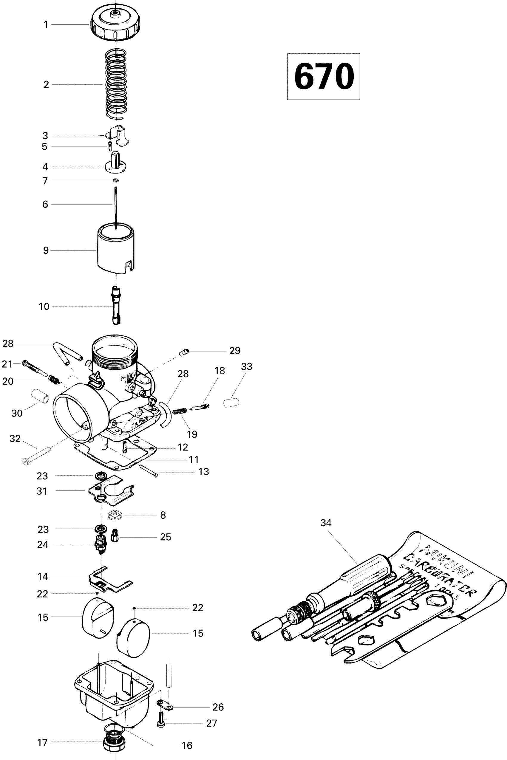 Ski-Doo Summit 670, 1996 Carburetor 670 Diagram