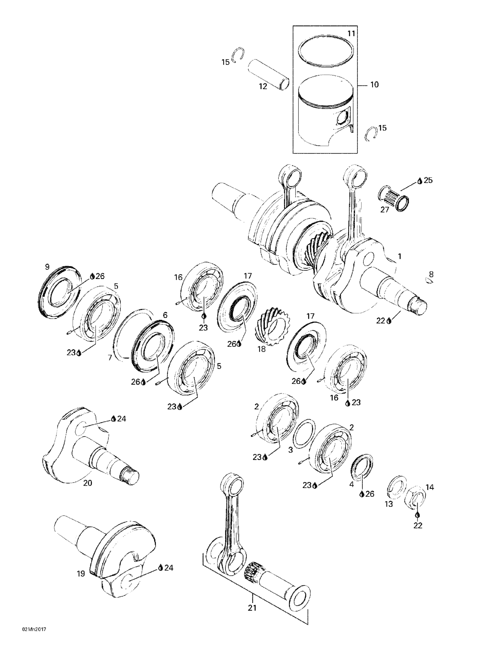 Ski-Doo Summit 700 SB, 2000 Crankshaft And Pistons Diagram