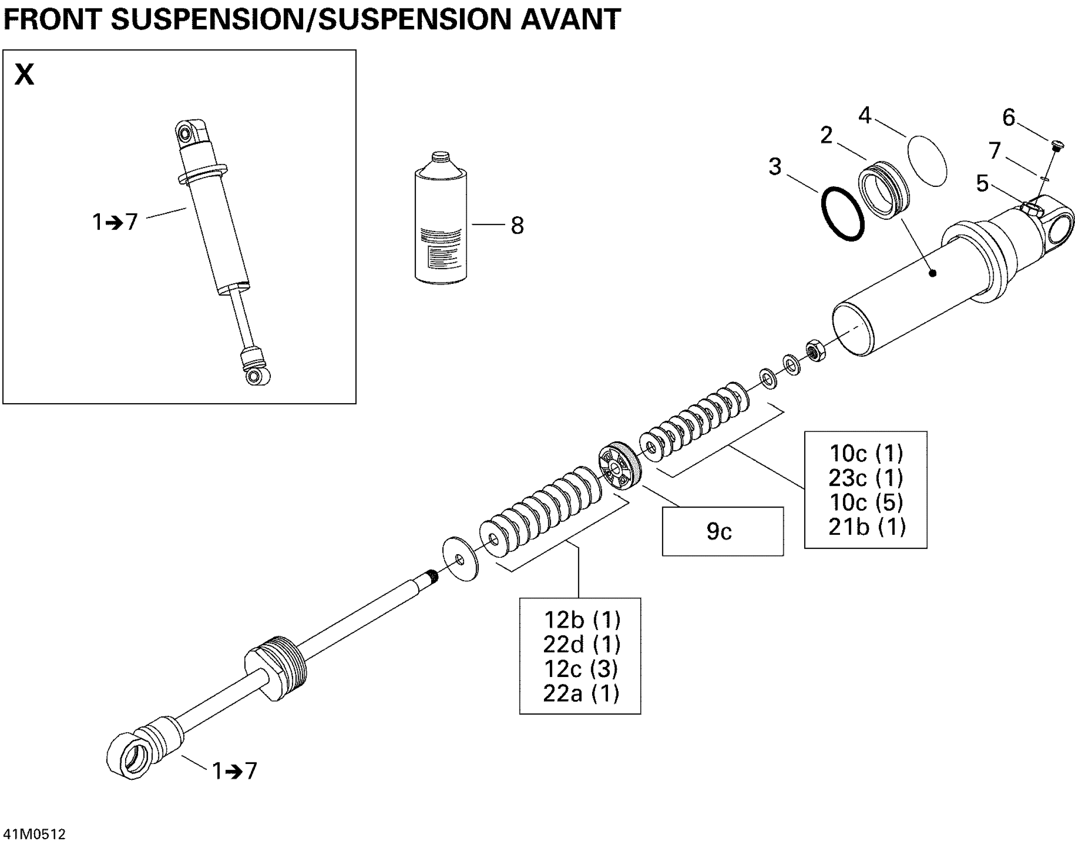 Ski-Doo Summit 800 HO, 2005 Take Apart Shock, Front X Diagram