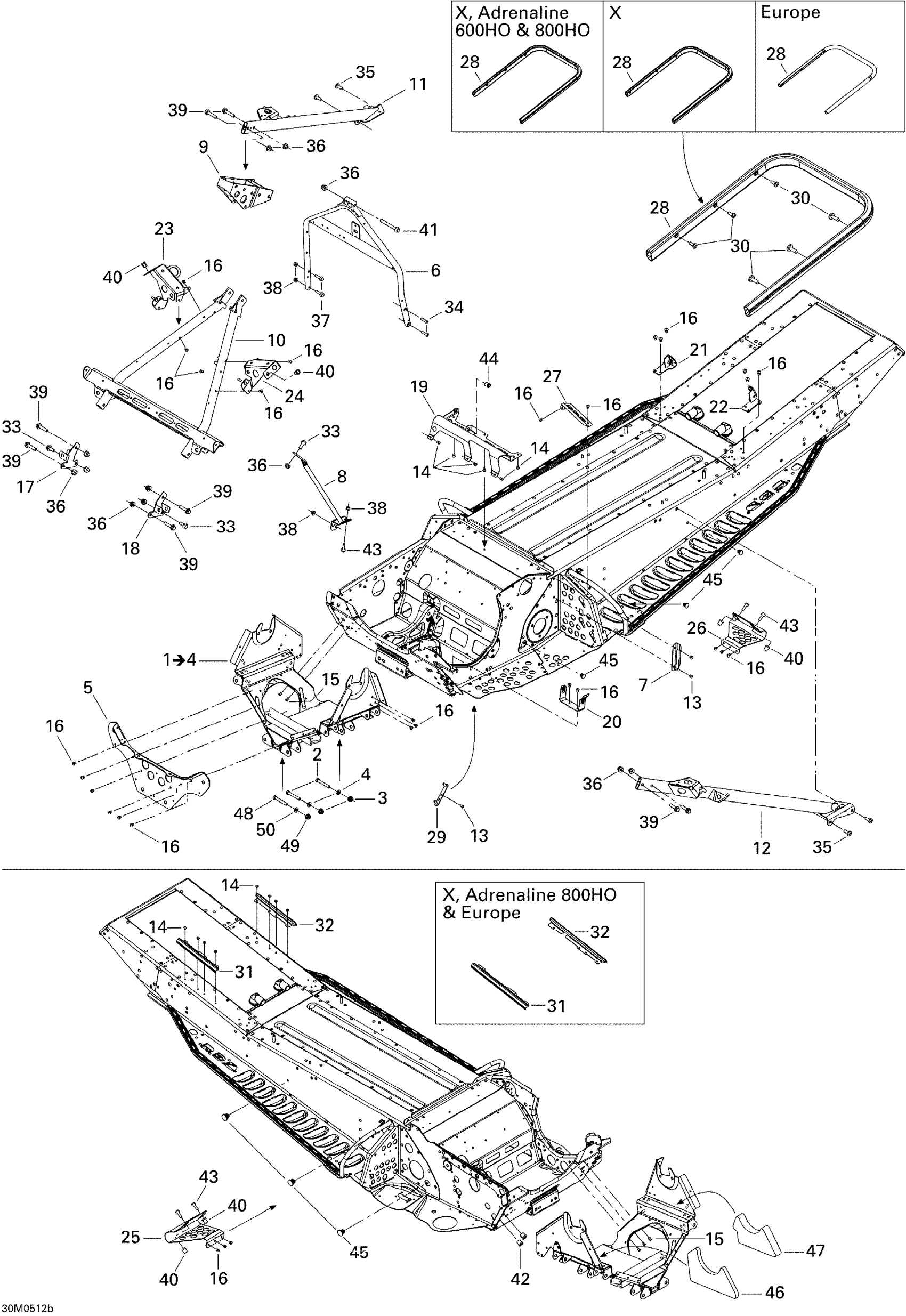 Ski-Doo Summit 800 HO, 2005 Frame and Components 800HO Diagram