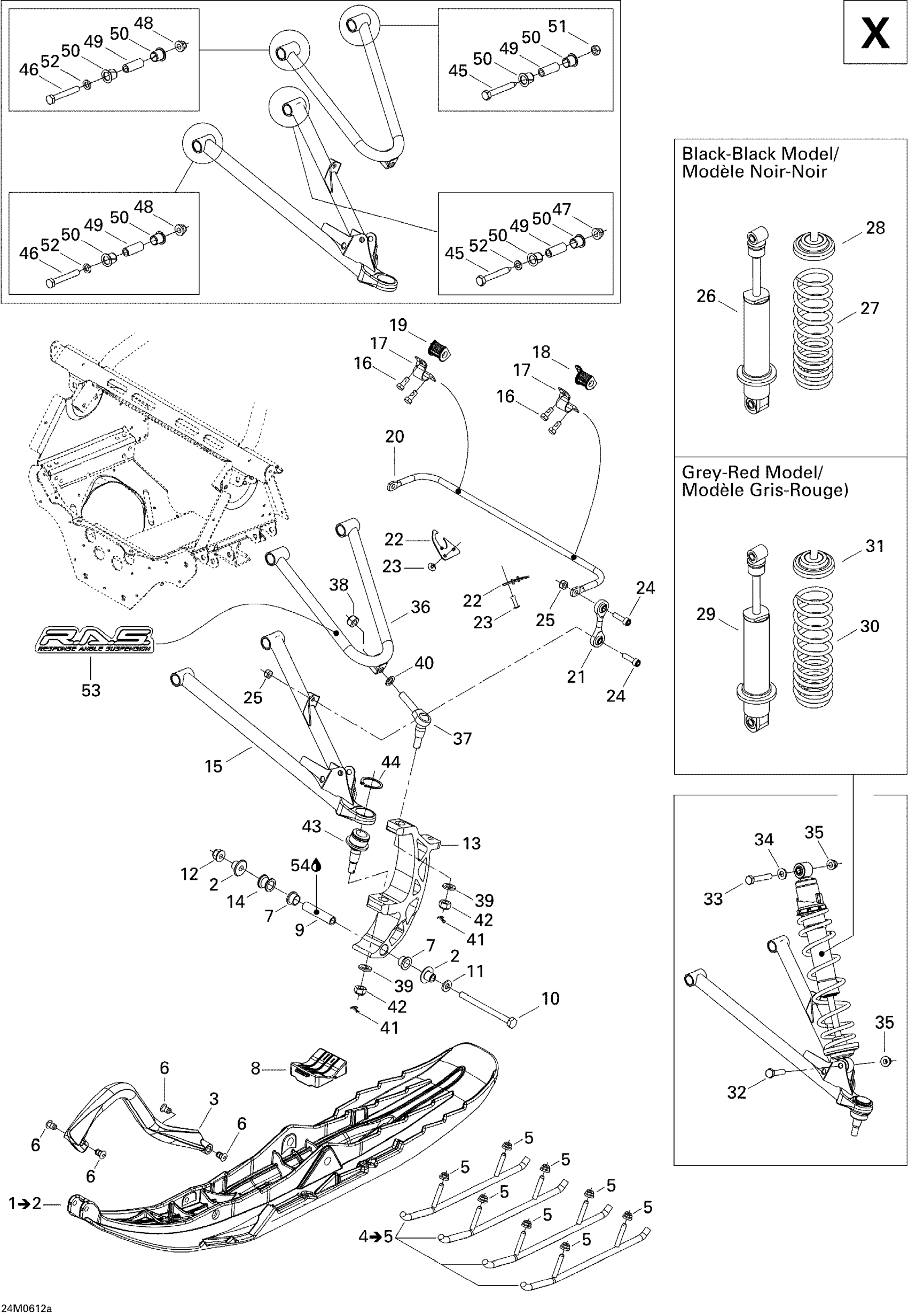 Ski-Doo Summit 800 HO, Adrenaline & X, 2006 Front Suspension And Ski X Diagram