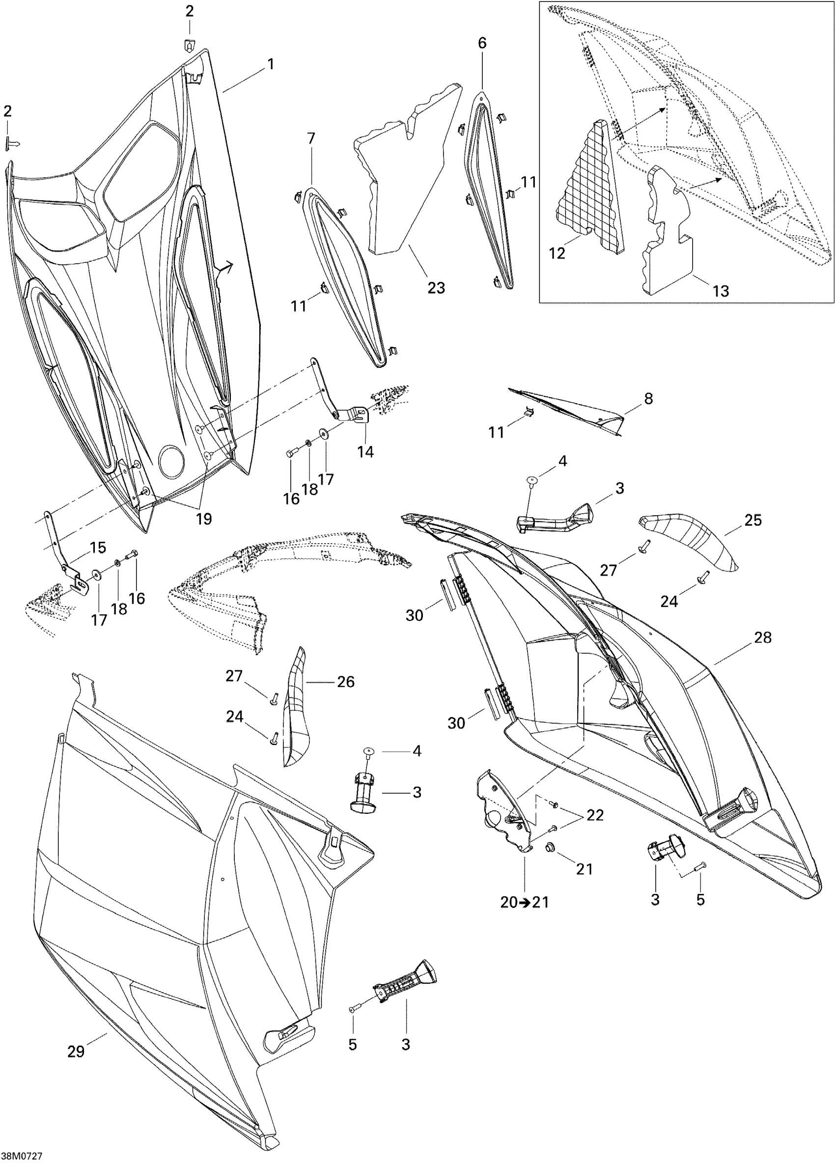 Ski-Doo Summit Adrenaline 600HO SDI, 2007 Hood Diagram