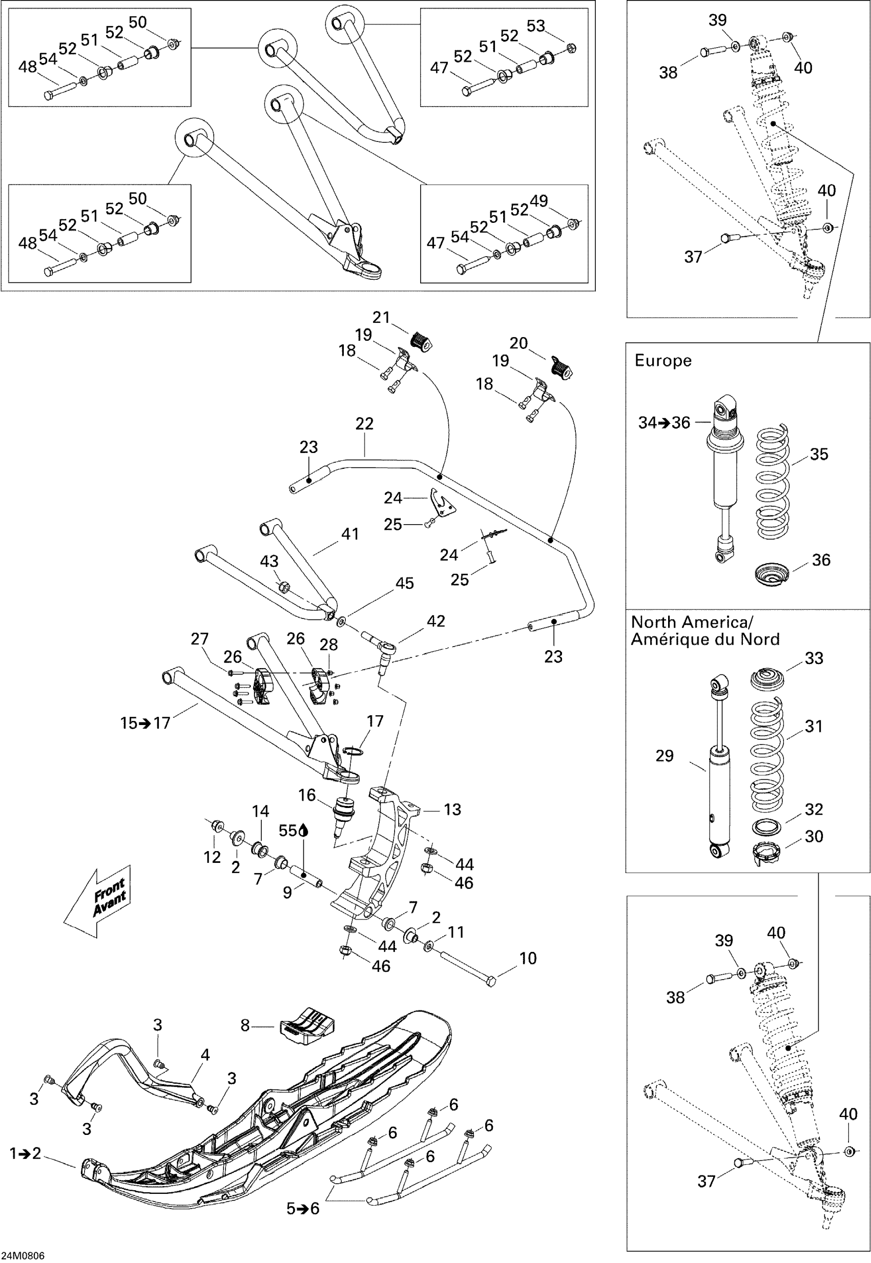 Ski-Doo Summit Adrenaline 600HO SDI, 2008 Front Suspension And Ski Diagram