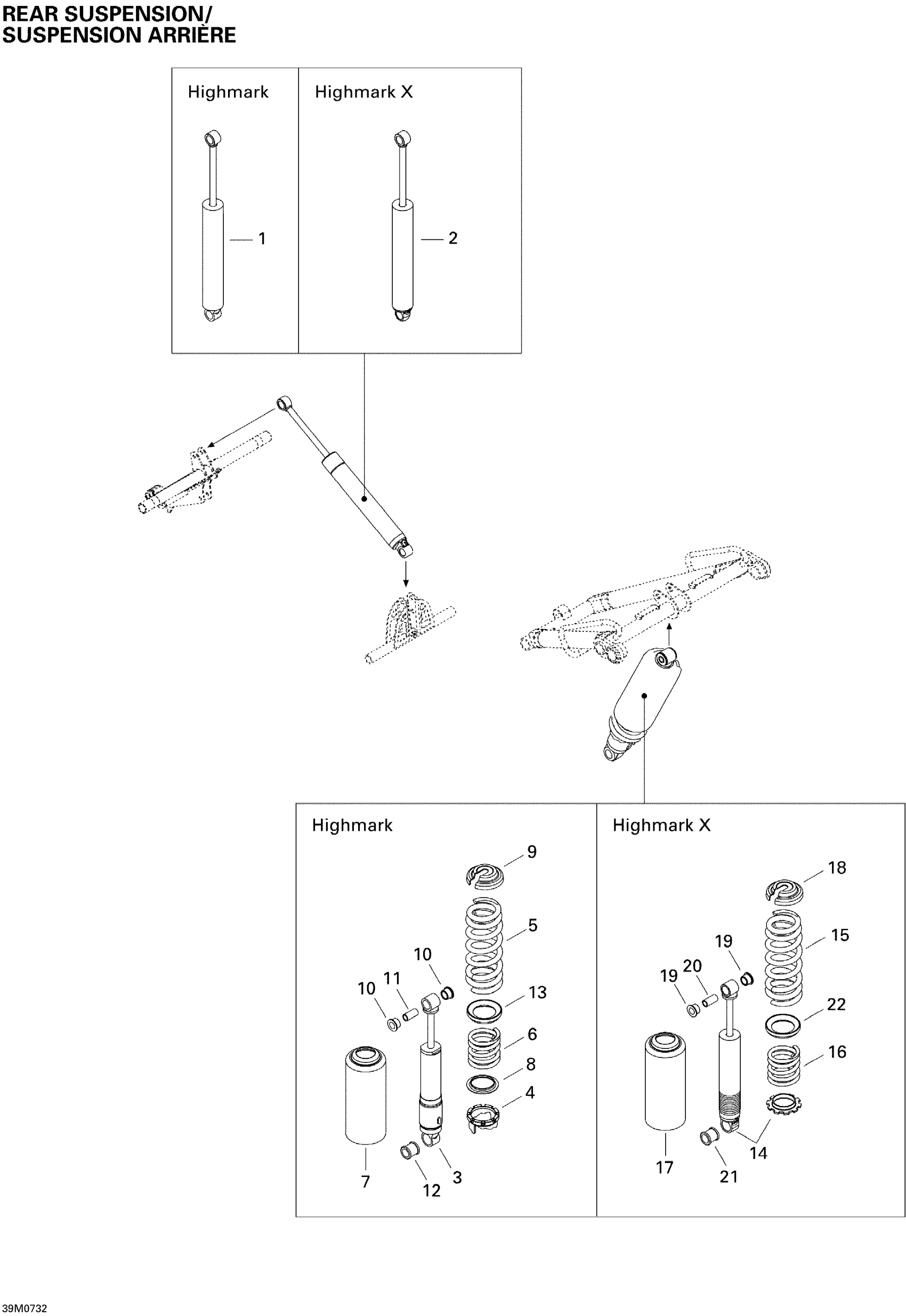 Ski-Doo Summit Highmark & Highmark X 1000 SDI, 2007 Rear Suspension Shocks Diagram