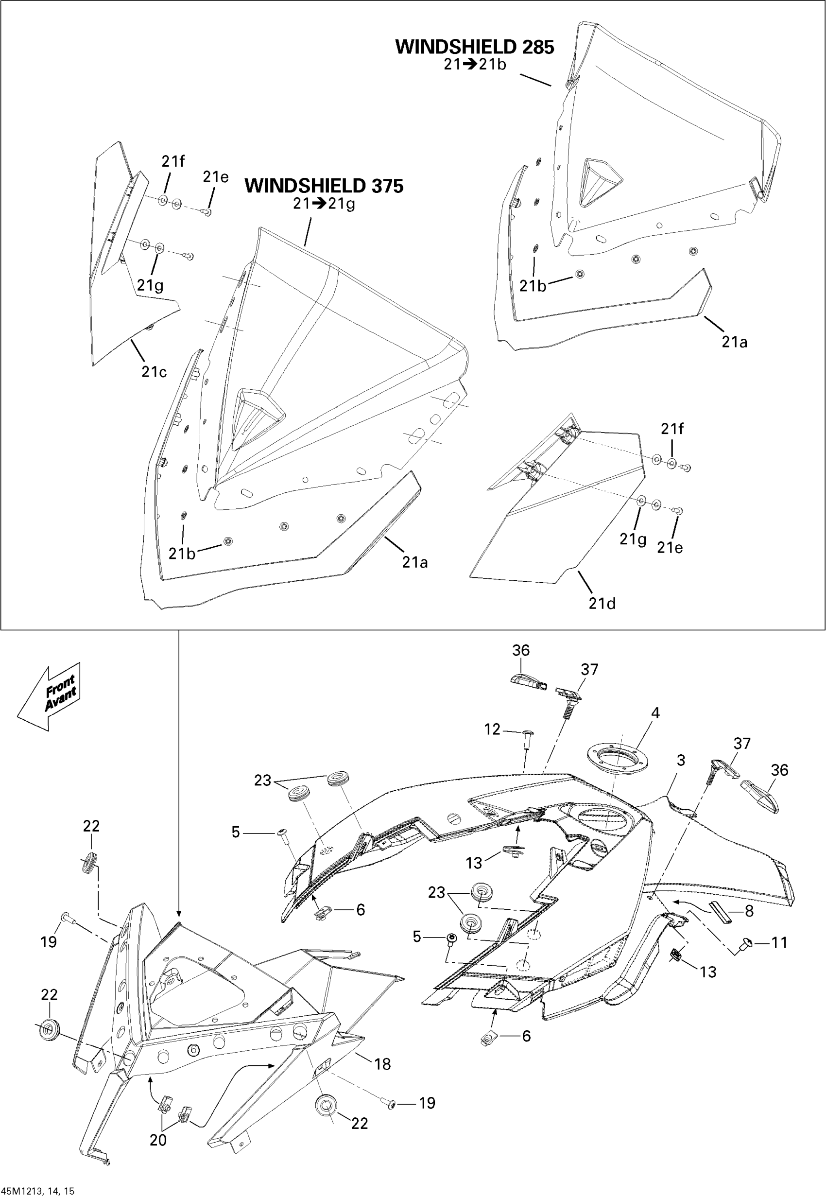Ski-Doo Summit SP 800R E-TEC, 2012 Windshield And Console 800R ETEC Diagram