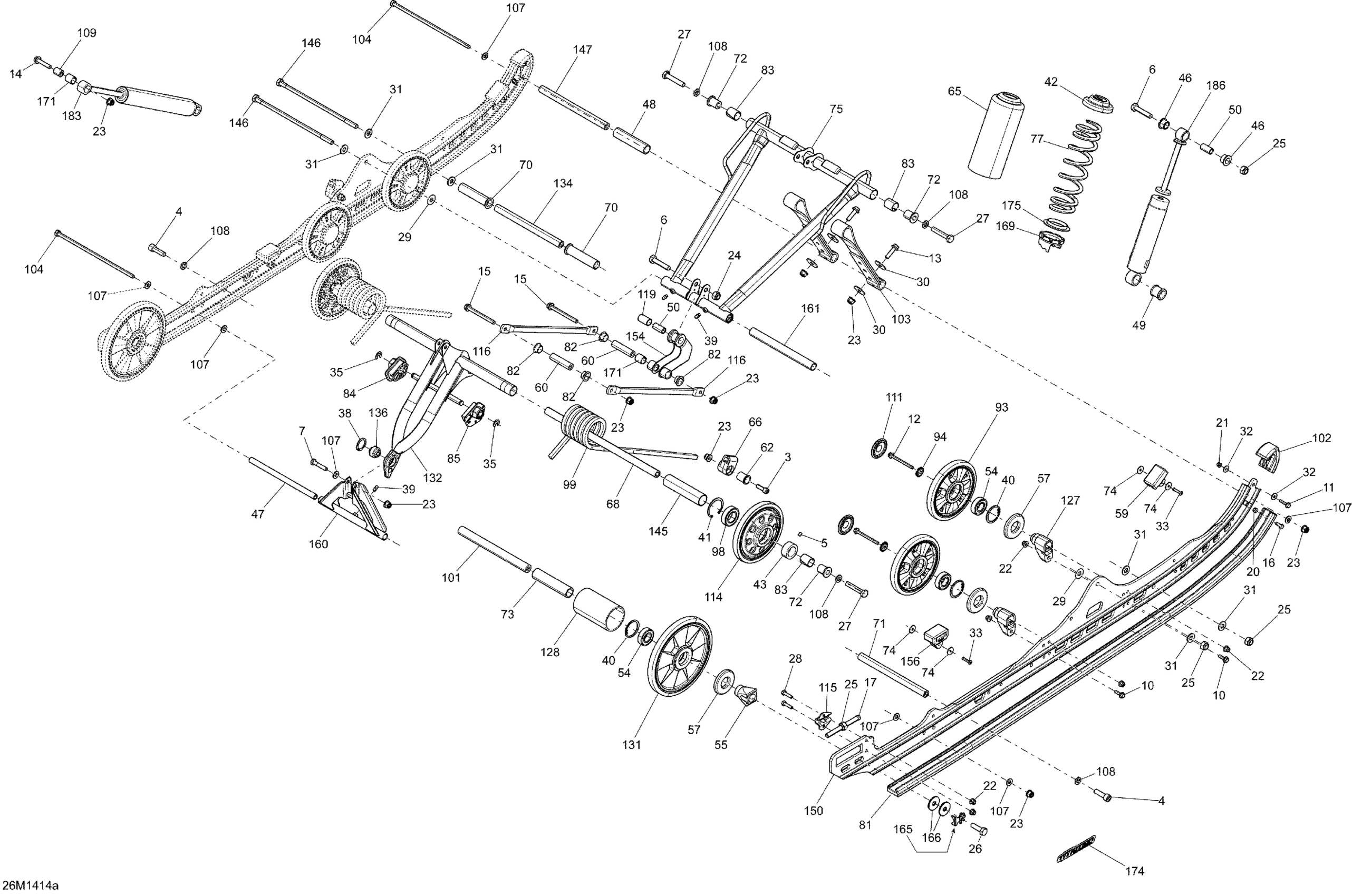 Ski-Doo SUMMIT SPORT 600 XP 146, 2014 08- Rear Suspension SPORT 600, 146 Diagram