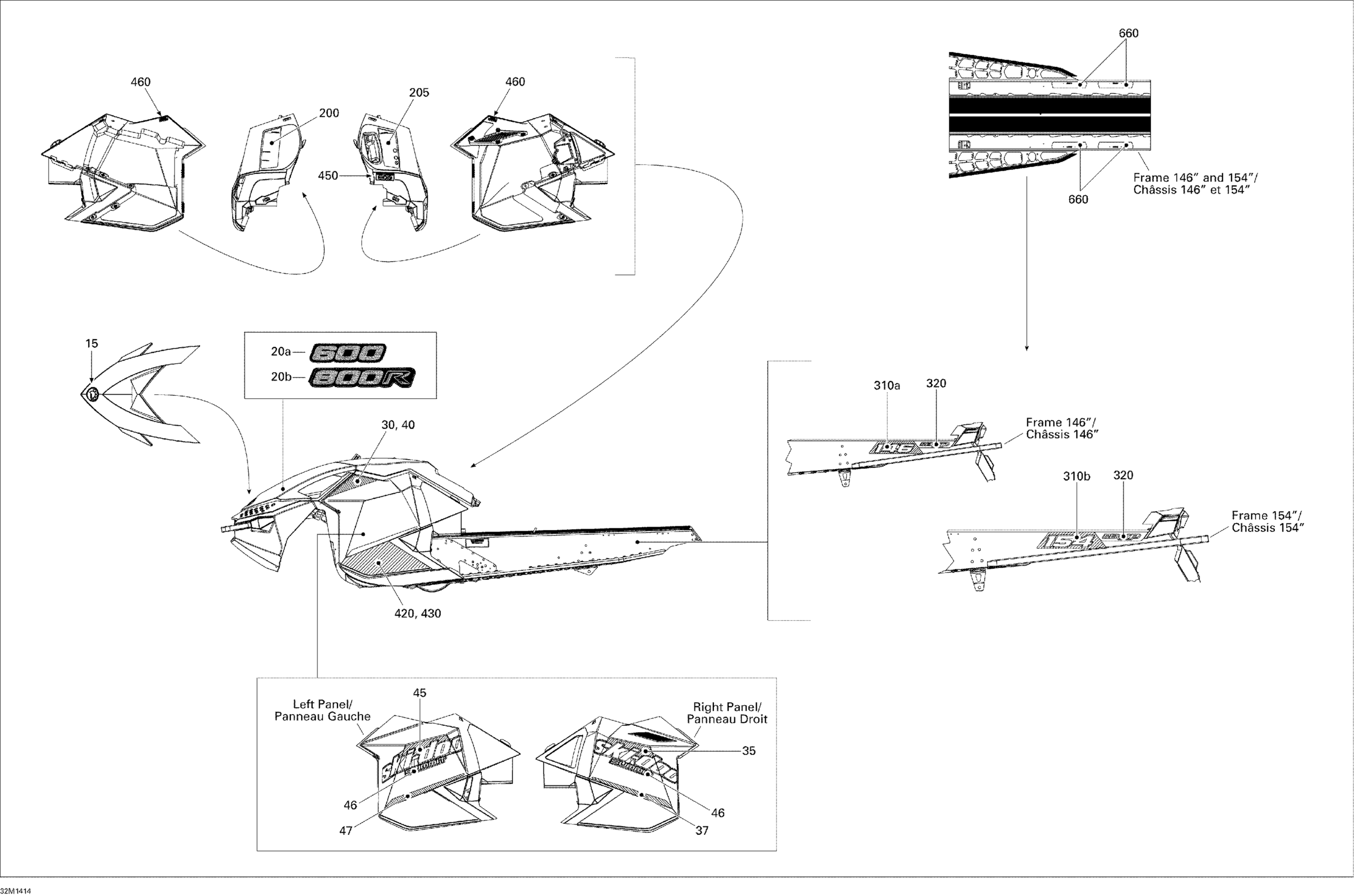 Ski-Doo SUMMIT SPORT 600 XP 146, 2014 Decals 600 Diagram
