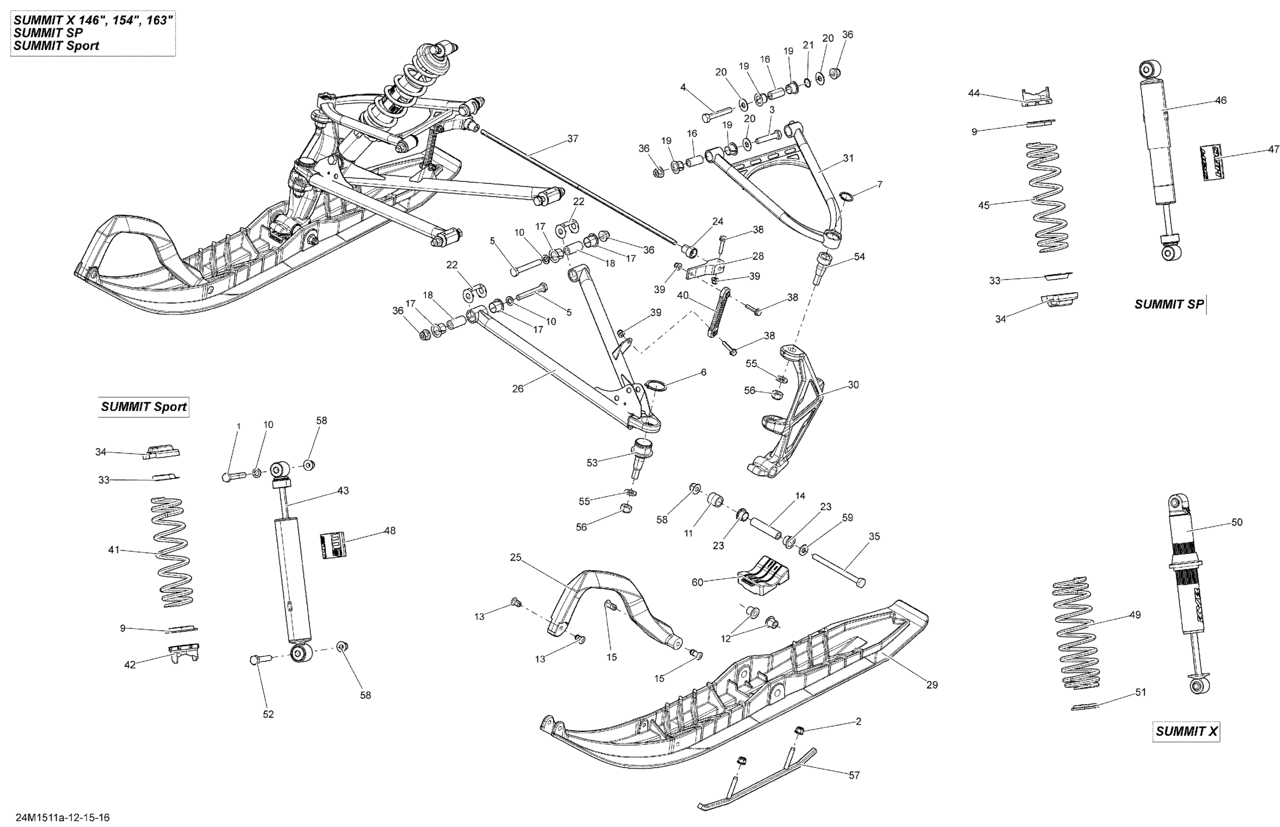 Ski-Doo Summit Sport 600 XP146, 2015 07- Front Suspension And Ski _24M1515 Diagram