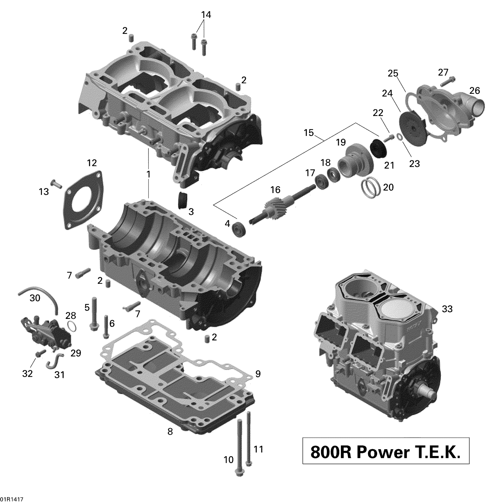 Ski-Doo SUMMIT SPORT 800R POWERTEK XP 154, 2014 Crankcase, Water Pump And Oil Pump Diagram