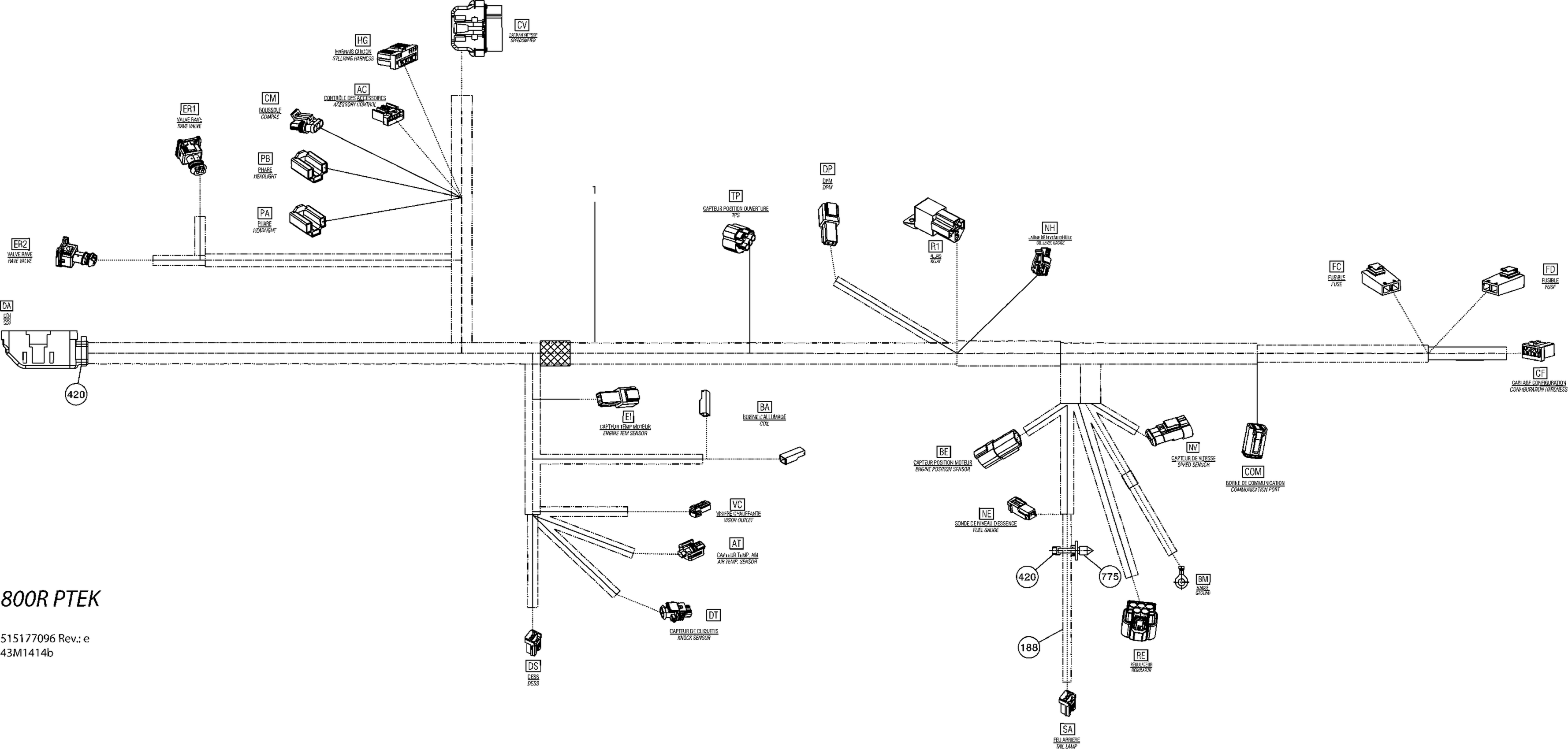 Ski-Doo SUMMIT SPORT 800R POWERTEK XP 154, 2014 Electrical Harness 800RPTEK Diagram