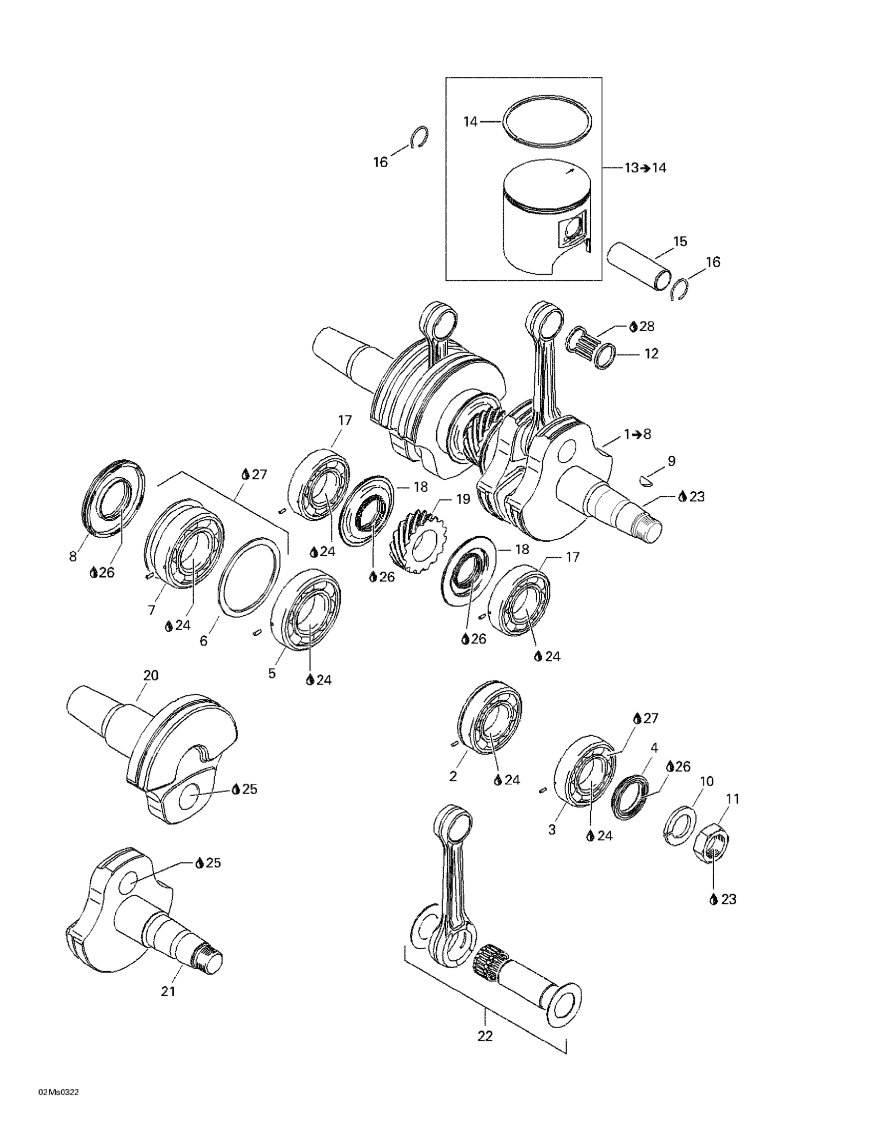 Ski-Doo Summit X 800 HO, 2003 Crankshaft And Pistons Diagram