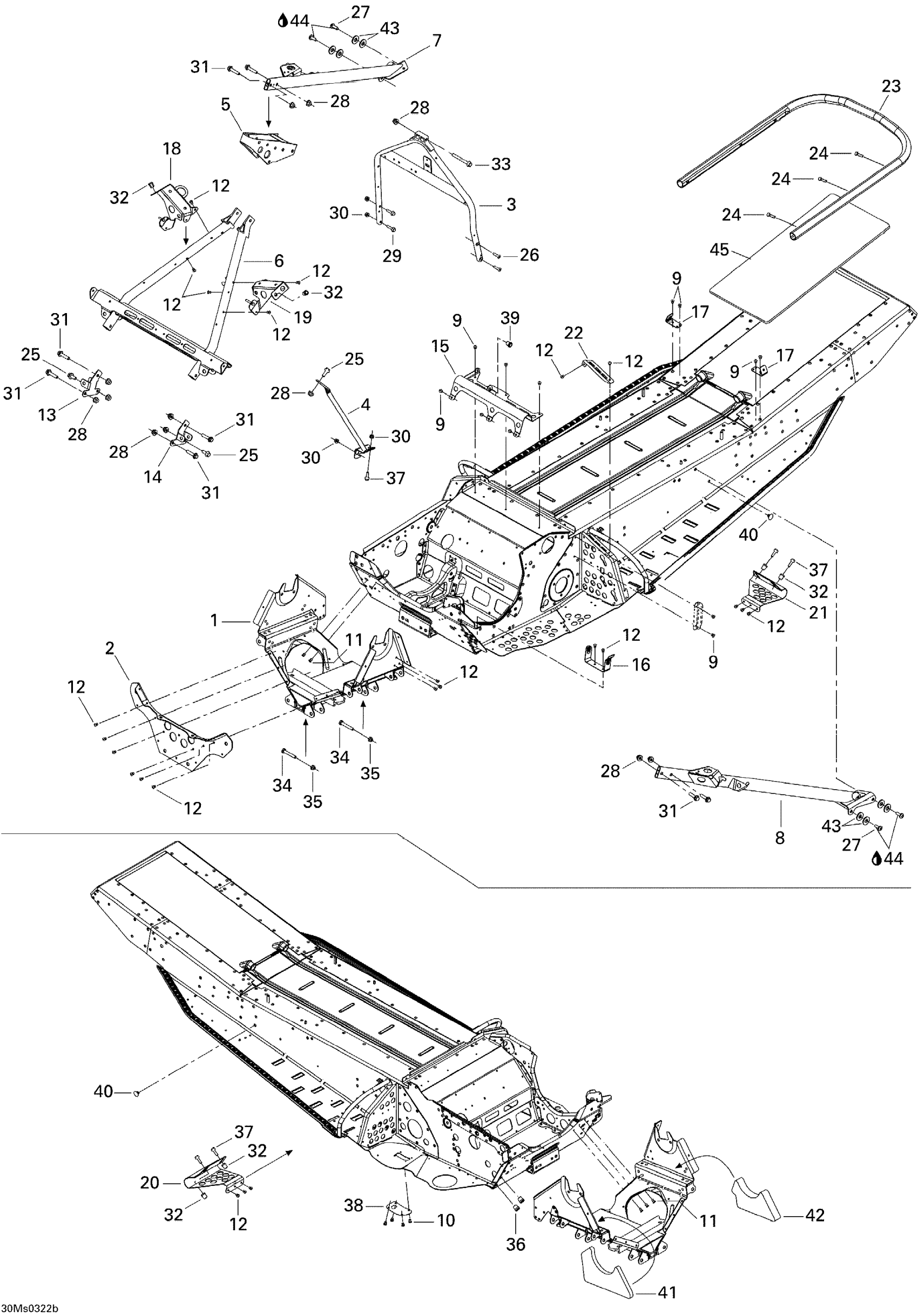 Ski-Doo Summit X 800 HO, 2003 Frame - Front And Rear Diagram