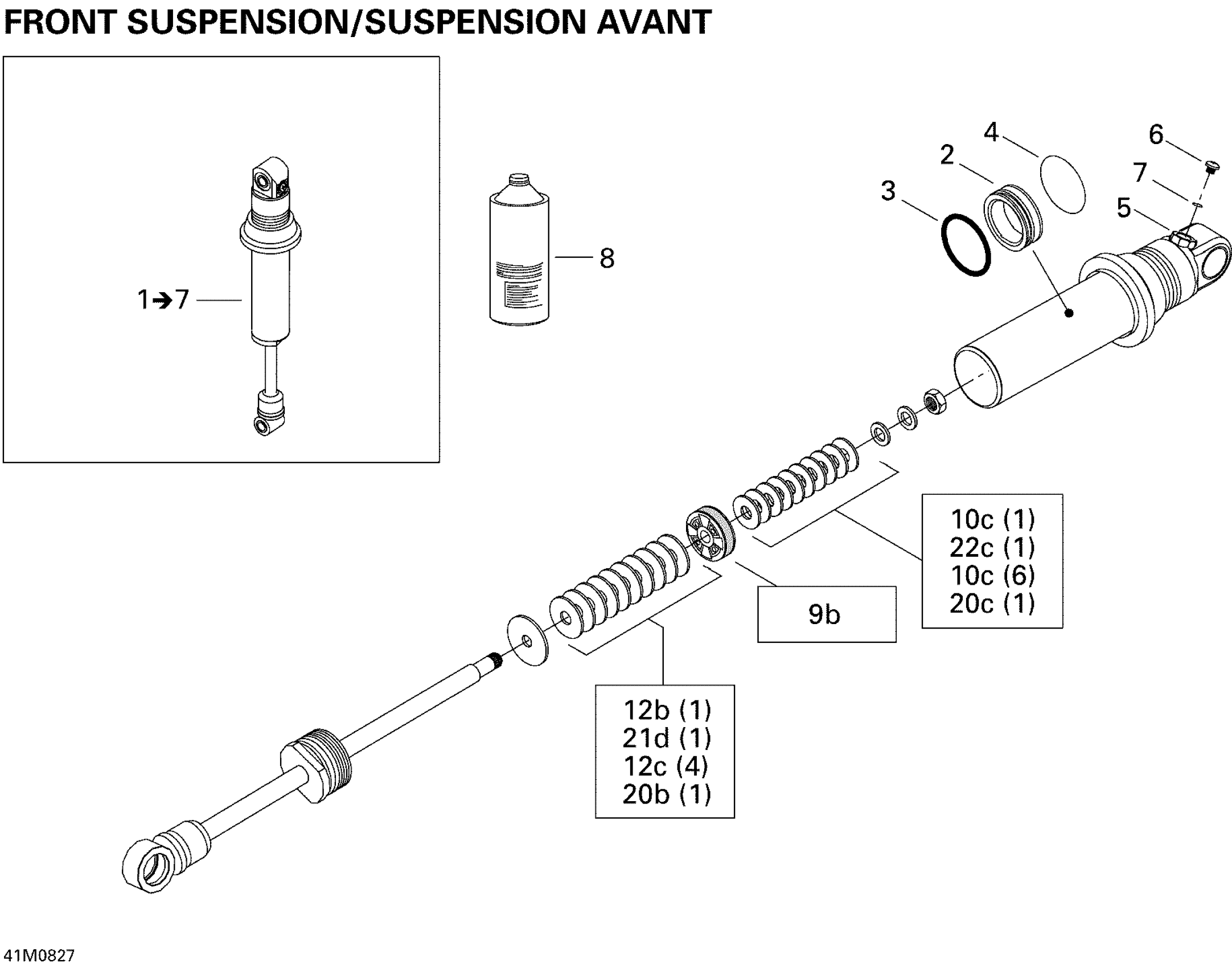Ski-Doo Summit X 800R, 2008 Take Apart Shock, Front Diagram