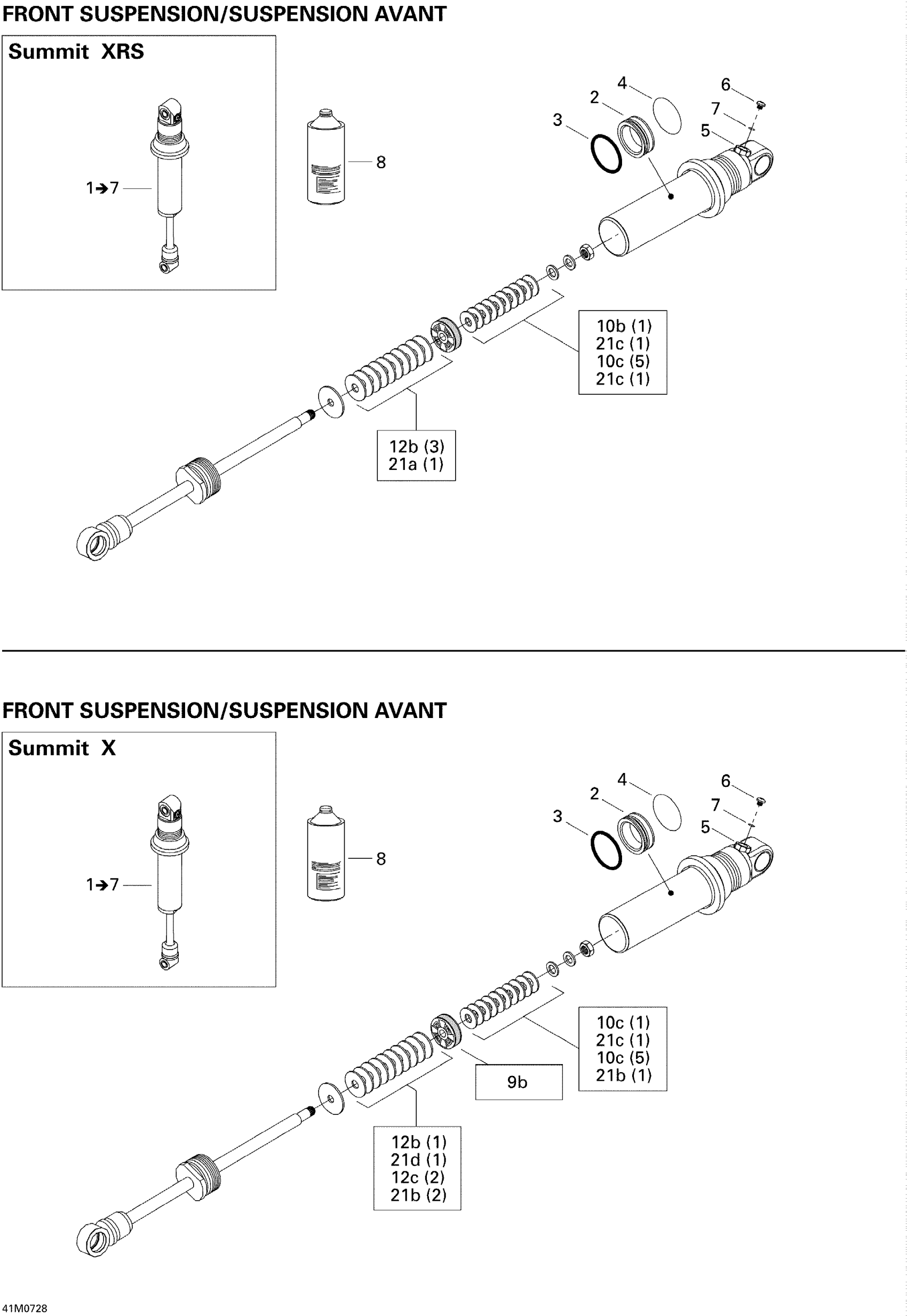 Ski-Doo Summit XRS, 2007 Take Apart Shock, Front XRS Diagram