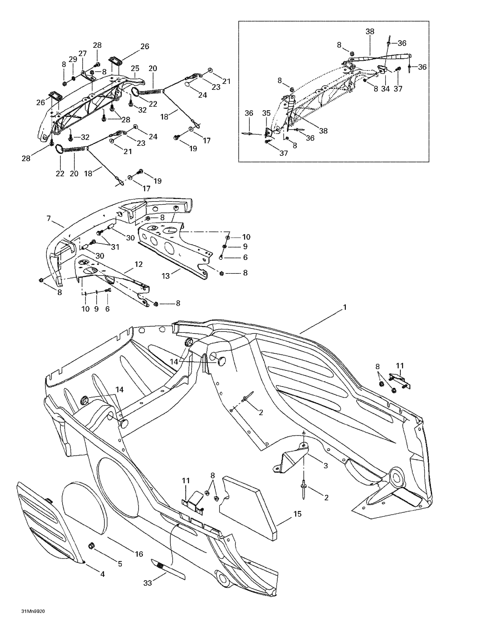 Ski-Doo Suumit 700, 1999 Bottom Pan Diagram