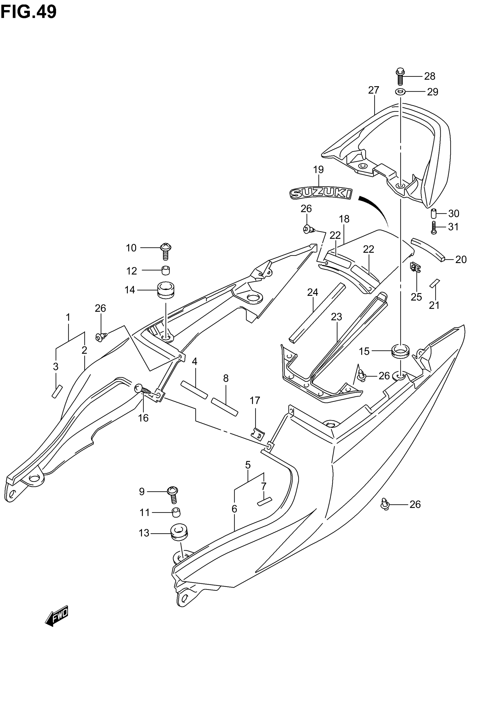 COVER,SEAT TAIL | Includes Item(s) 19 - 22 This part replaces 45503-16G00-YAV.