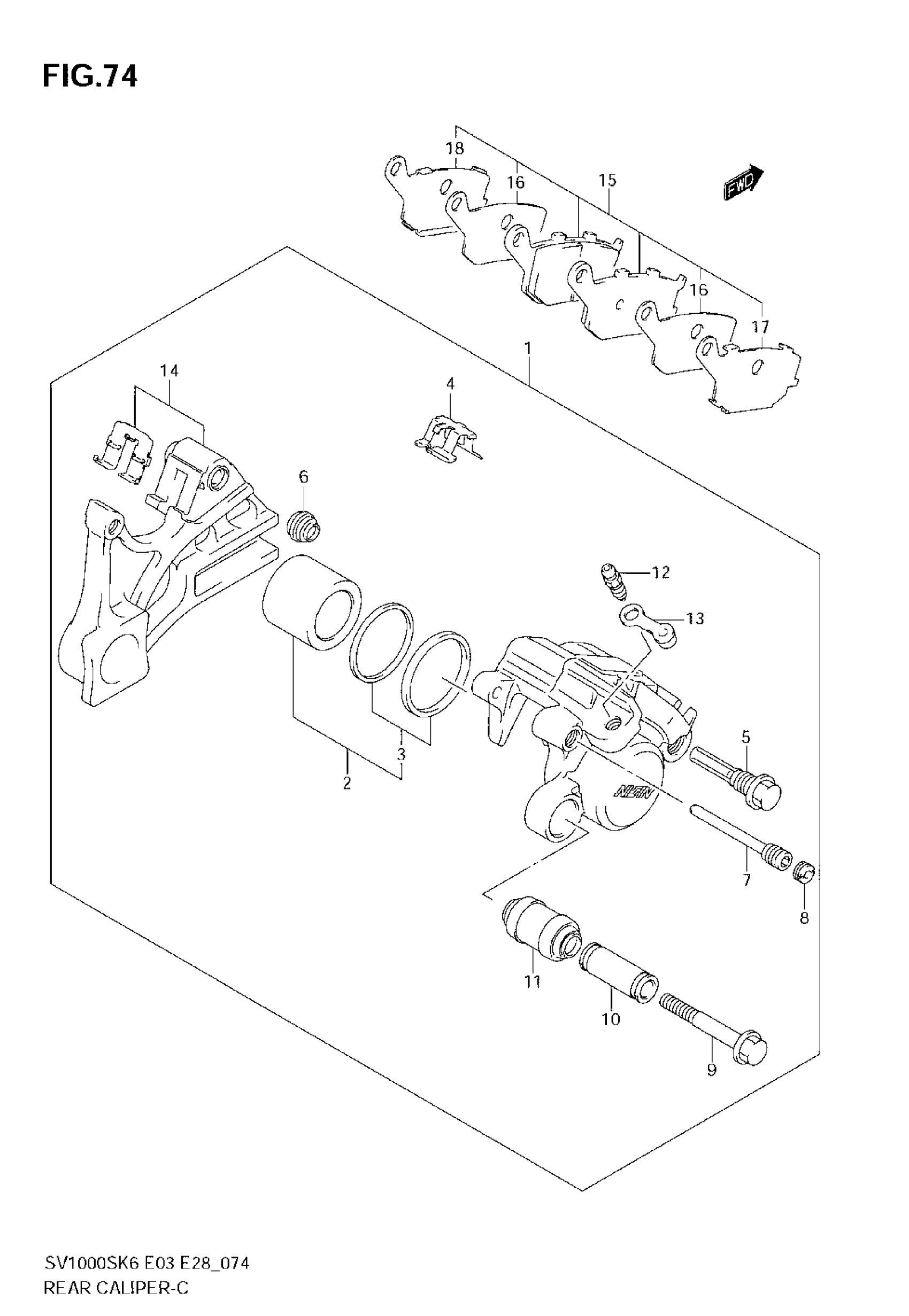 Suzuki SV1000 (2007) REAR CALIPER Diagram