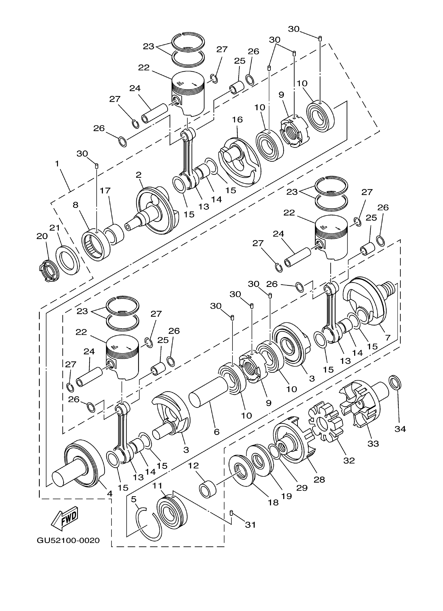 Yamaha SV1200A (SUV1200) GU54 2002 CRANKSHAFT. PISTON Diagram