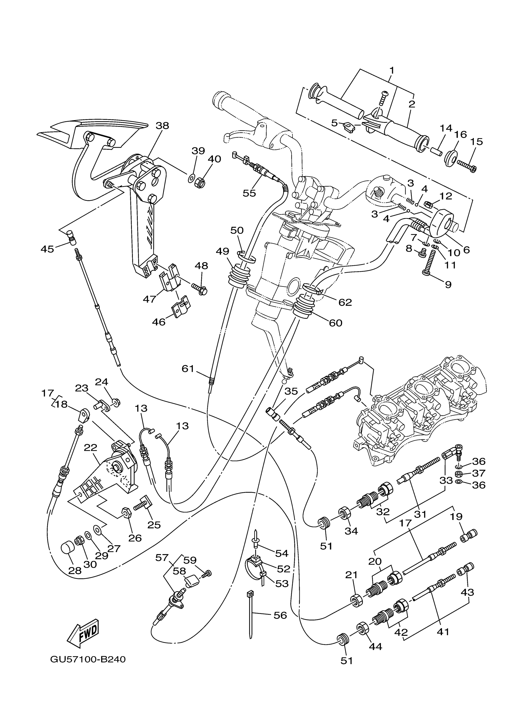 Yamaha SV1200C (SUV1200) GU5A 2004 CONTROL CABLE Diagram