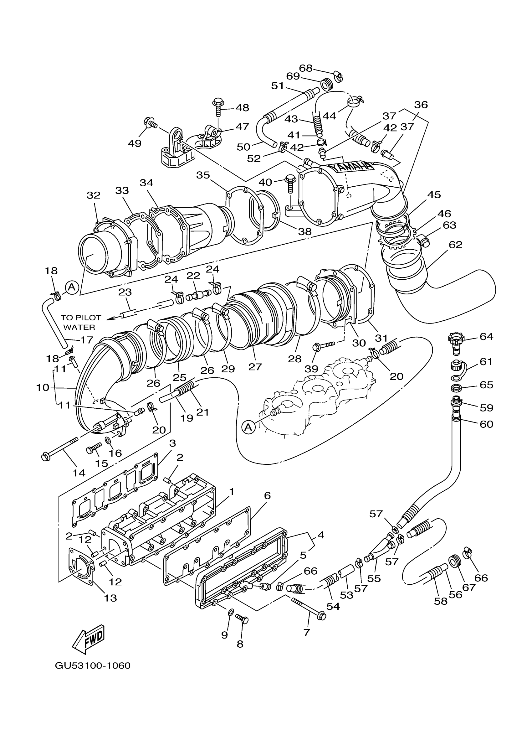 Yamaha SV1200C (SUV1200) GU5A 2004 EXHAUST 1 Diagram