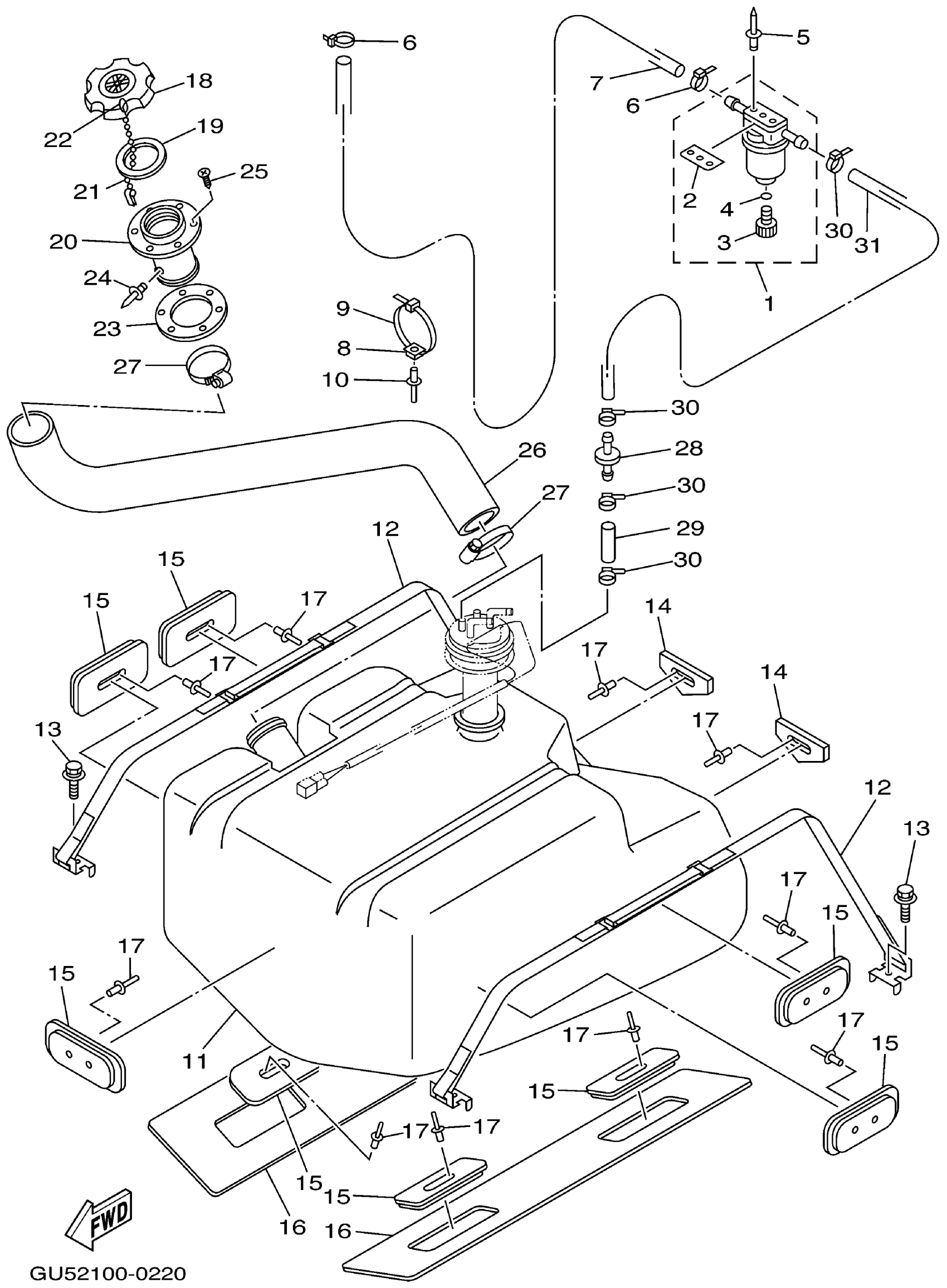 Yamaha SV1200Z (SUV1200) GU53 2001 FUEL TANK Diagram