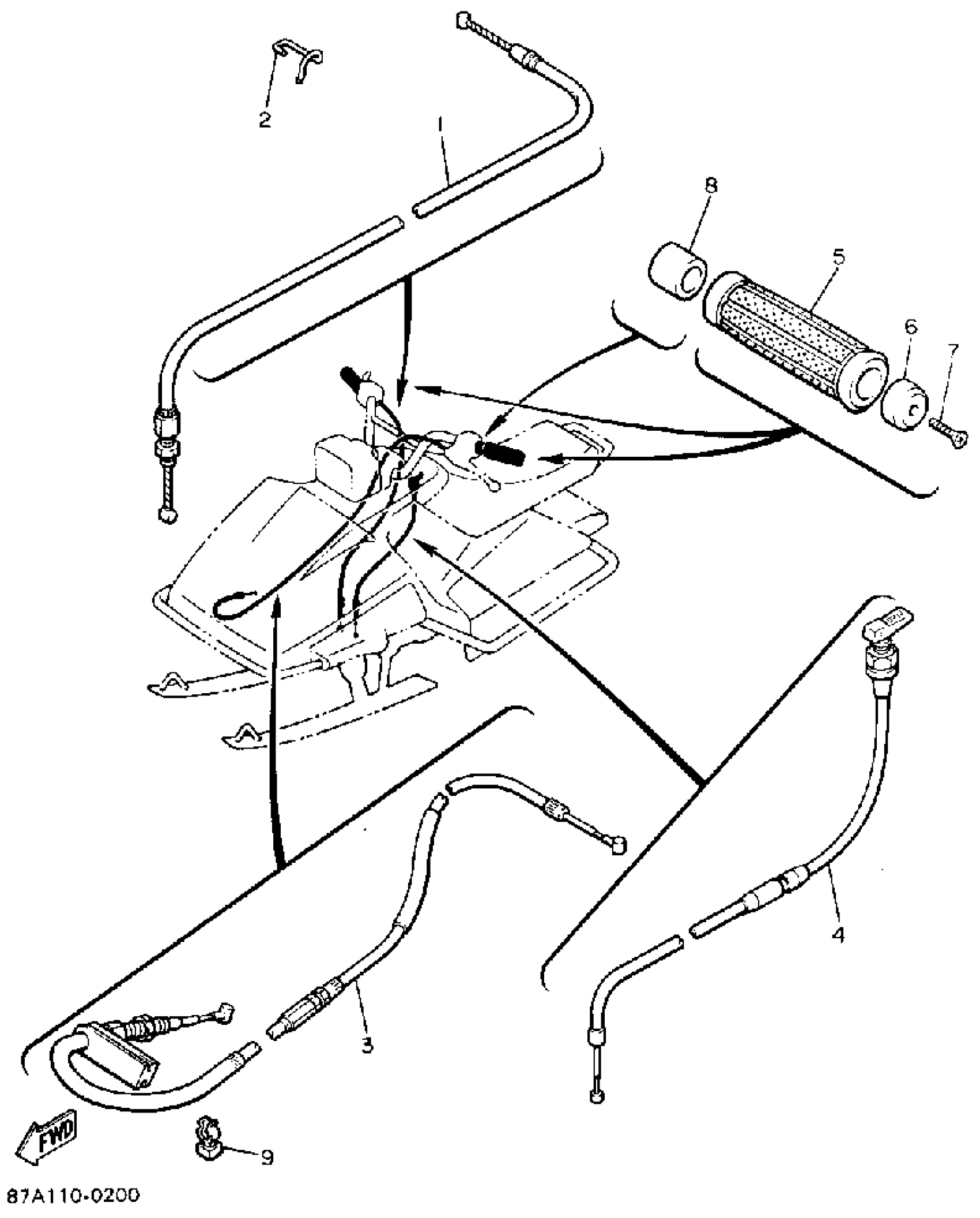 Yamaha SV125P (SNOSPORT) 1990 CONTROL CABLE Diagram